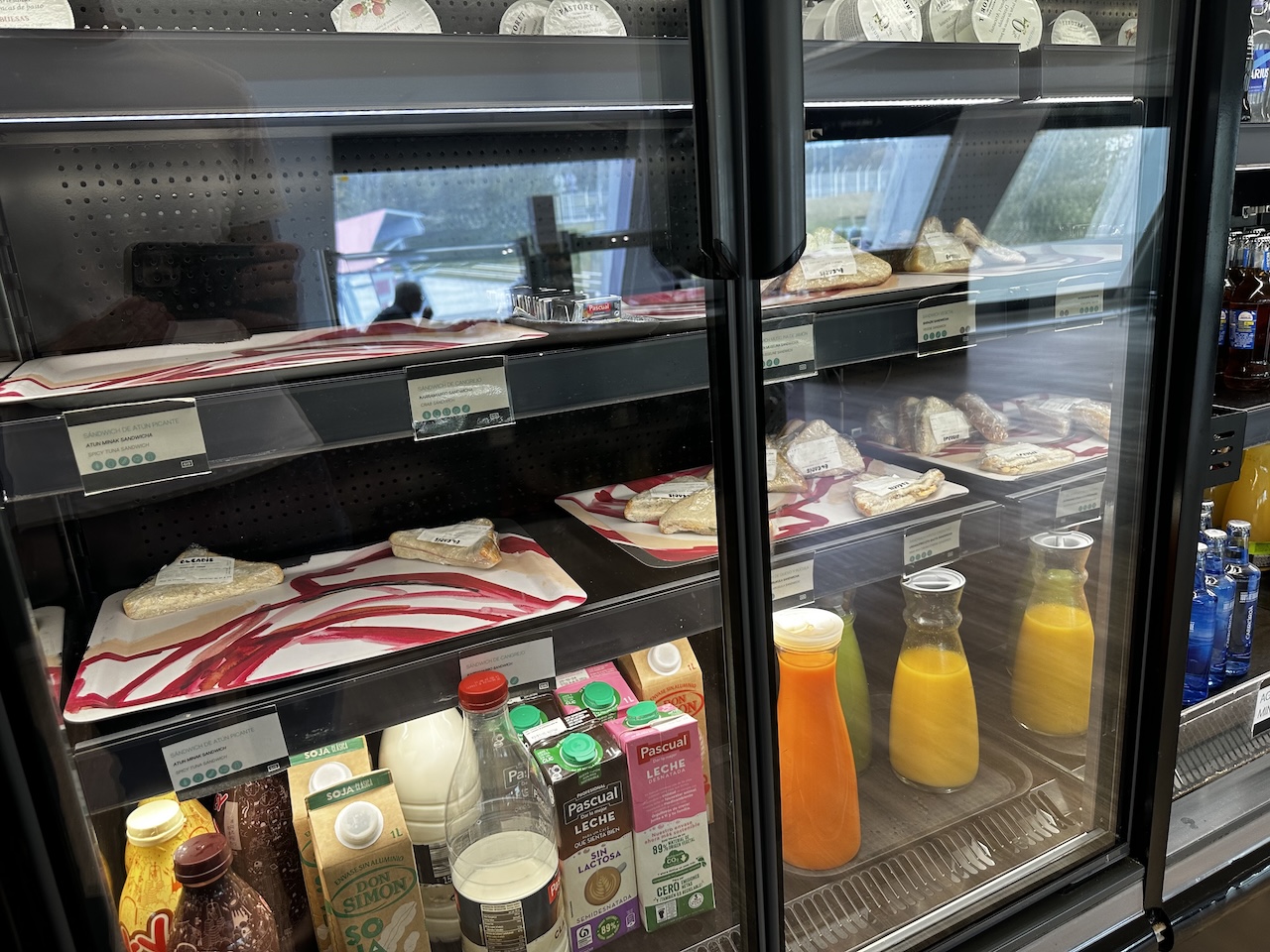 In einem separaten Kühlschrank standen noch abgepackte Sandwiches mit unterschiedlichem Belag, Joghurt in verschiedenen Sorten sowie Milch und Alternativen.