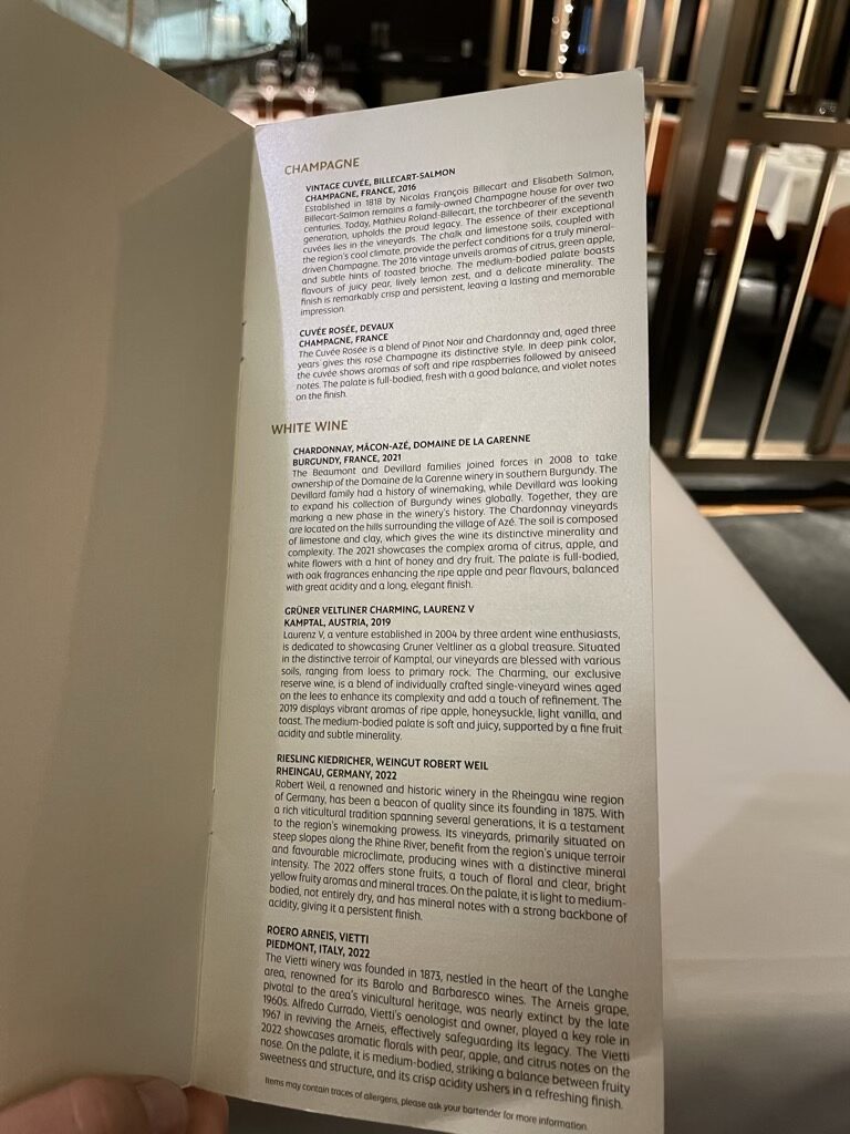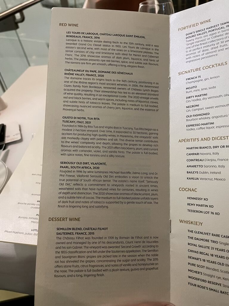 Dem Ratschlag meiner Keller folgend, bestellte ich zwei Vorspeisen, da diese „very tiny“ seien und auch direkt den Hauptgang. Man fragte mich, wann ich boarden würde und nachdem wir über eine Stunde Zeit hatten, vereinbarten wir eigentlich, dass wir alle Gänge nach einander essen und diese entsprechend serviert werden.