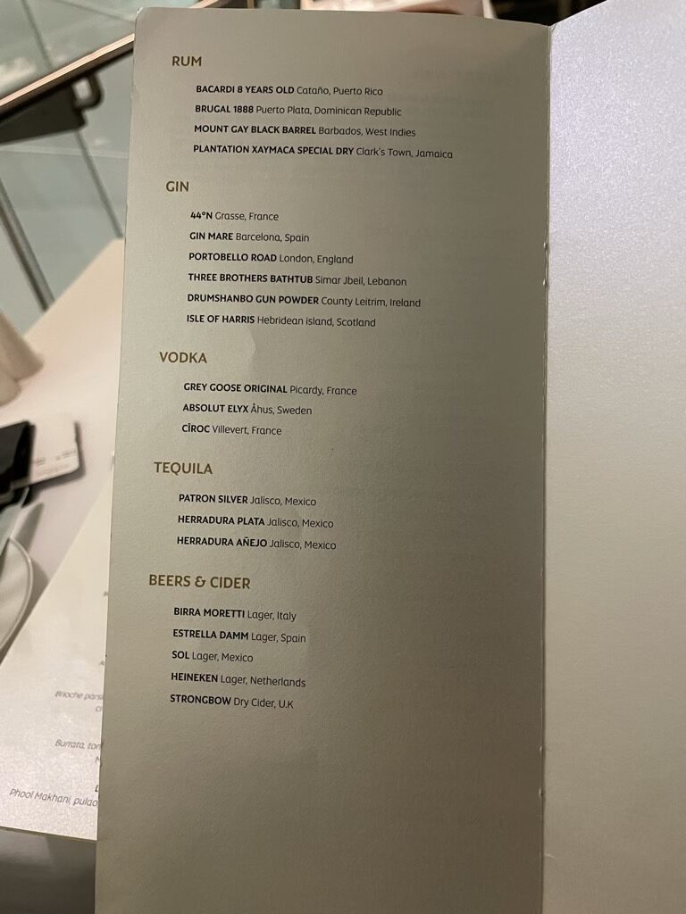 Ein Bereich in dem Etiahd Airways immer punkten kann ist F&B und dies gilt auch für die neue First Class Lounge in Abu Dhabi. Hier bekommen die Gäste eine wunderbare Karte aus der man bei den Kellnern in der Lounge nach Lust und Laune bestellen kann. Die (leider schon etwas abgegriffene Karte) hatte hierbei einiges im Angebot.