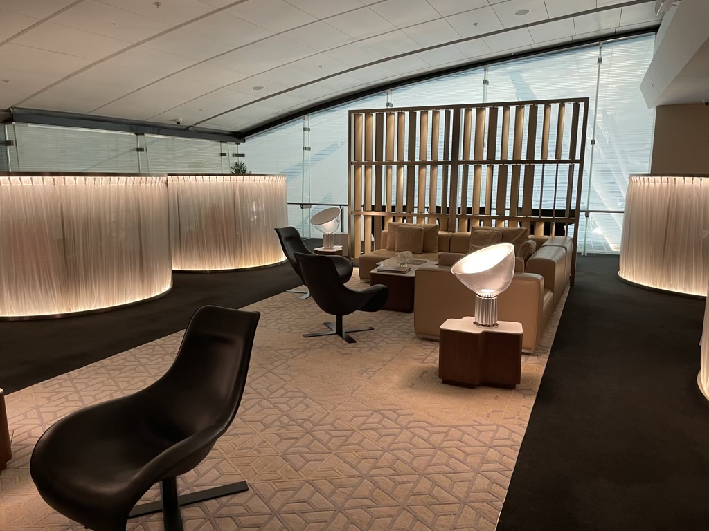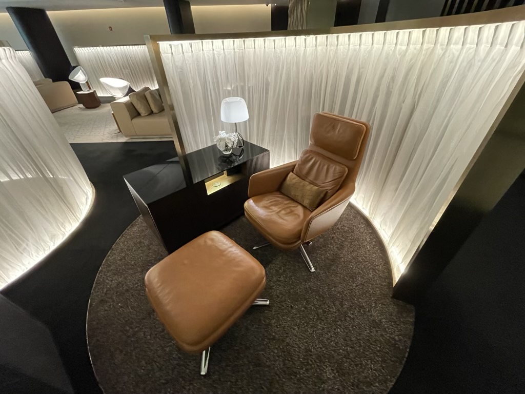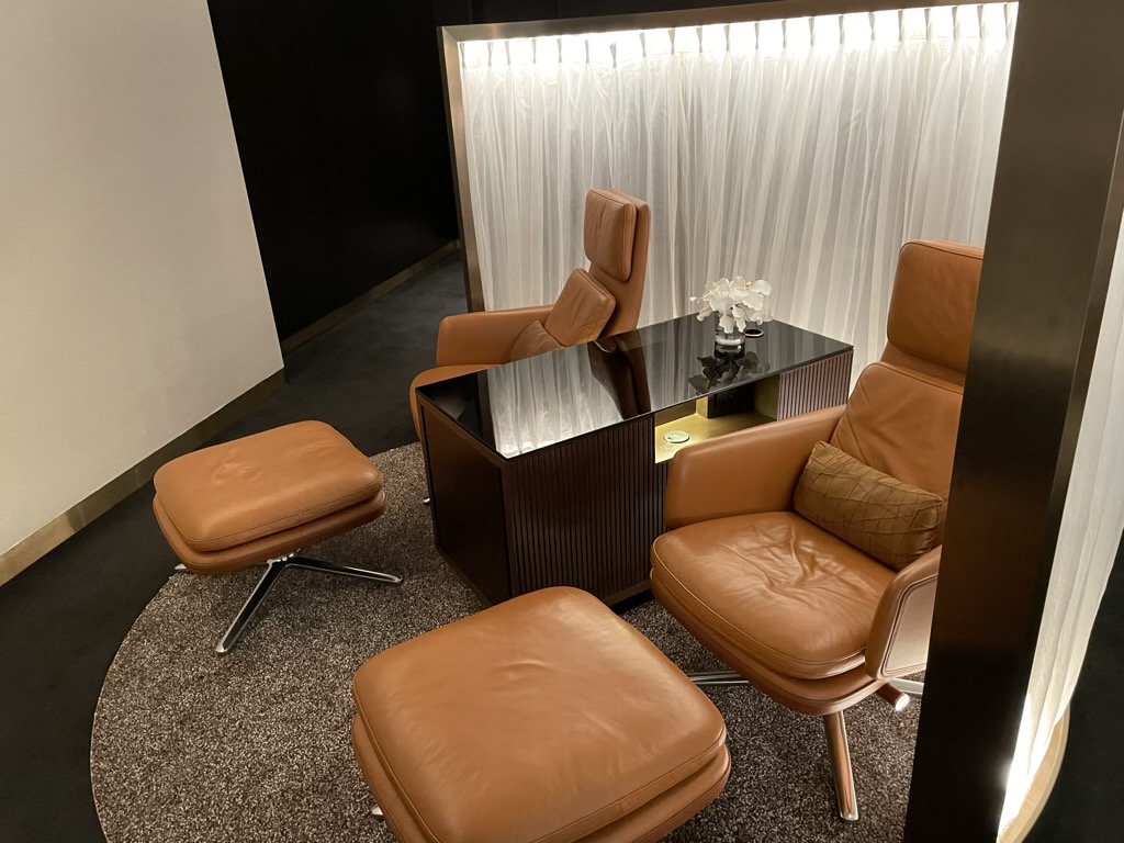 Im hinteren Bereich der Lounge befindet sich noch eine weitere Lounge Area, welche man wohl am ehestens als Ruhebereich bezeichnen kann. Hier gibt es mehrere separate Sessel, die sich recht flach stellen lassen und auf denen man sich gut ausruhen oder gar schlafen kann.