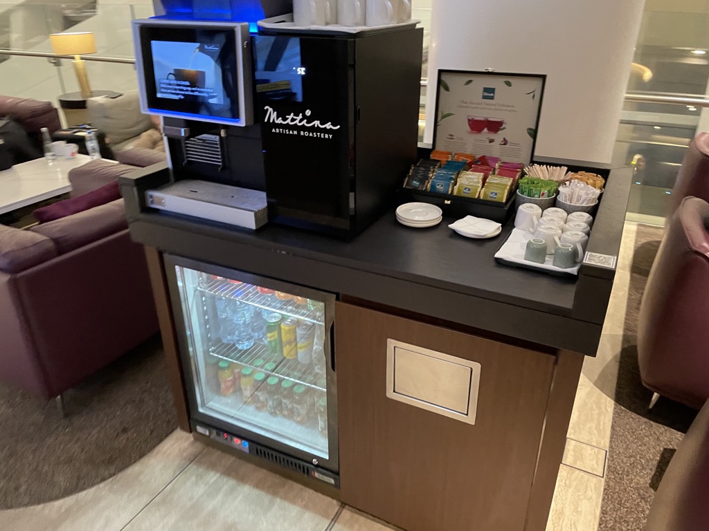 In der ganzen Lounge verteilt gab es auch kleine Buffets mit Kühlschränken. Hier fand man aber nur Tee und Kaffee, sowie Softdrinks. Für alles weitere muss man in eines der Restaurant Bereiche gehen, wo es auch eine Bar gibt. Mehr hierzu weiter unten.