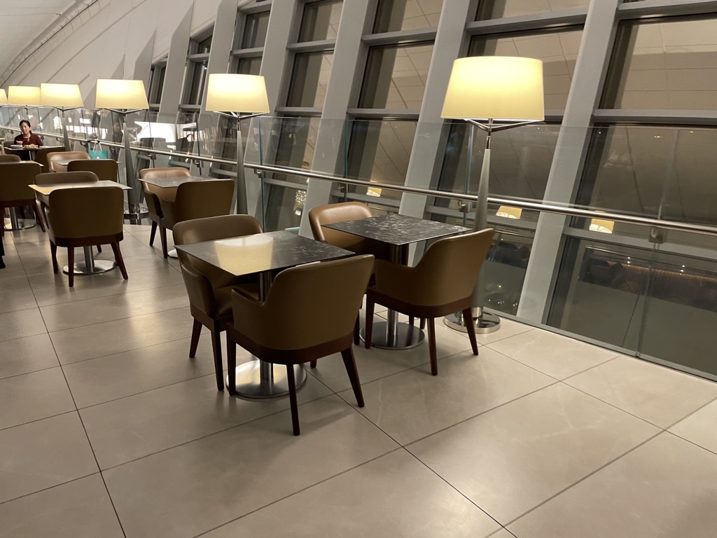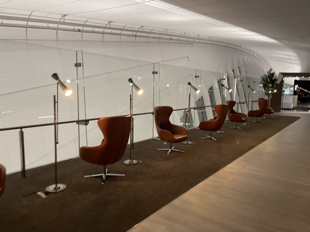 Dort angekommen habe ich mich mit der Lounge ein wenig vertraut gemacht und sie erinnerte mich im Aufbau durchaus etwas an die Emirates Lounge in Dubai, da sie sich entlang der Fensterfront sehr weit über das Terminal erstreckt. Hier findet man auch eine Reihe von verschiedenen Sitzgelegenheiten, sowie Spezialbereiche.