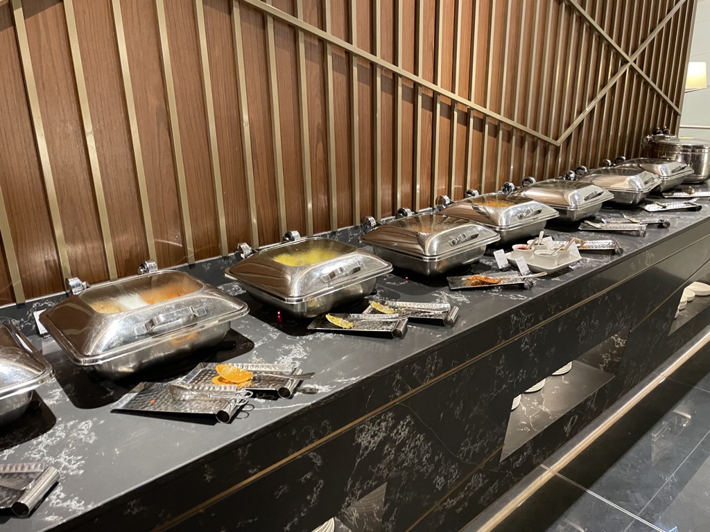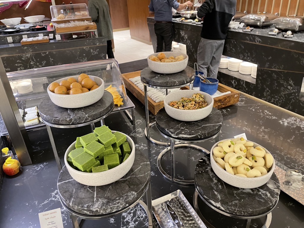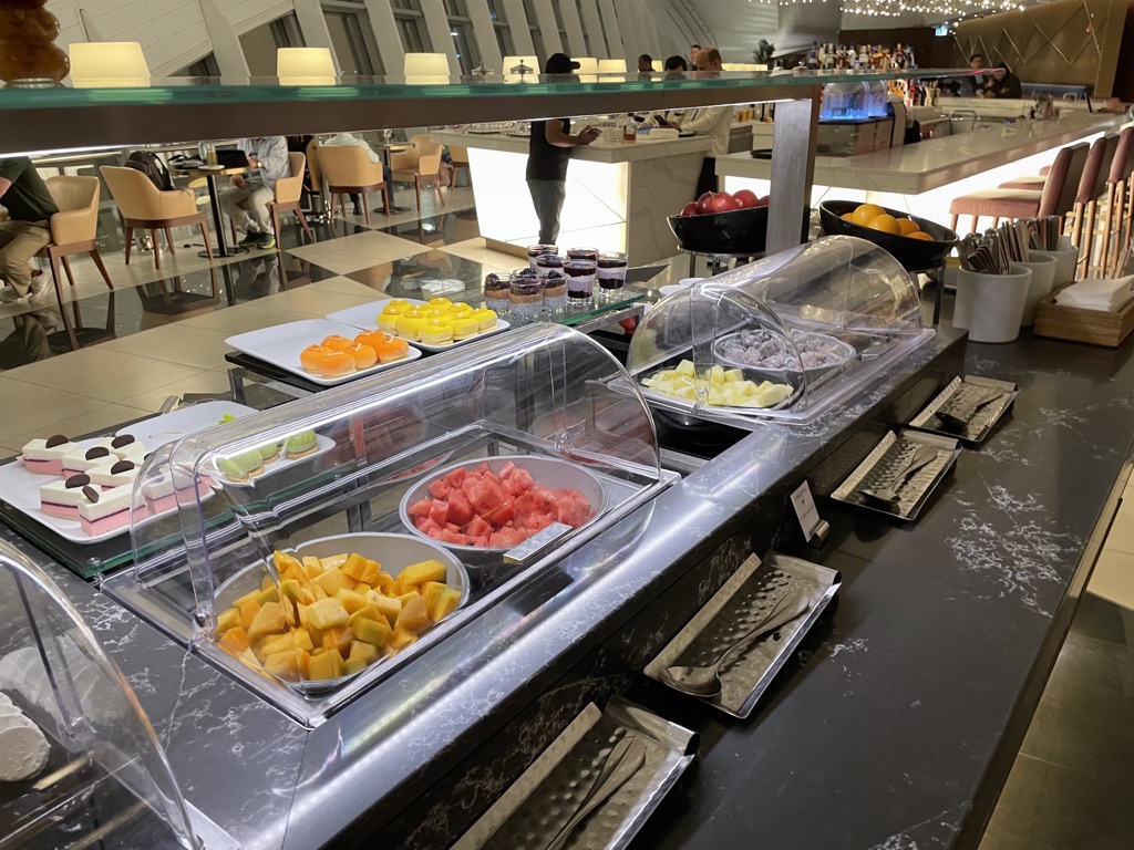 An gleich drei Buffet Inseln bietet hier Etihad Airways mehrere kalte und warme Speisen aus verschiedenen Regionen an. Für eine Business Class Lounge fand ich das Angebot auch sehr ansprechend und vor allem umfangreich, wobei man sich natürlich etwas wie ein kleines Menü mit frischen Gerichten durchaus wünschen könnte. Darauf verzichtet man aber in der Business Lounge komplett und solch ein Fine Dining Konzept ist auch bei Etihad Airways, zumindest in der Lounge in Abu Dhabi der First Class vorenthalten.