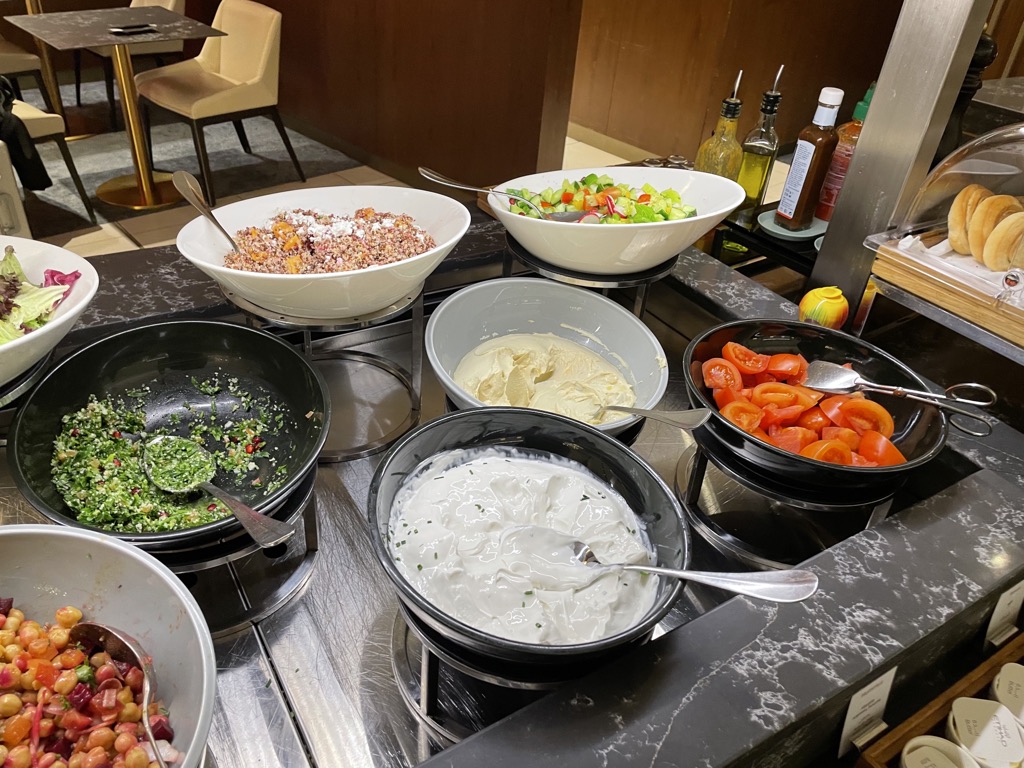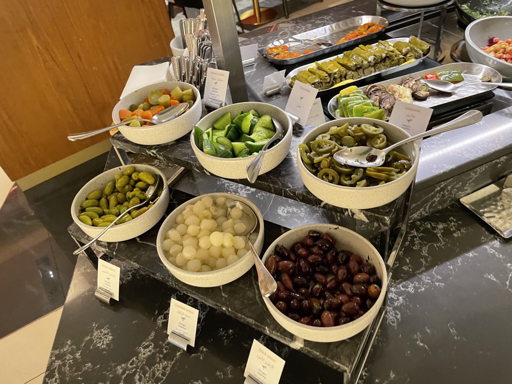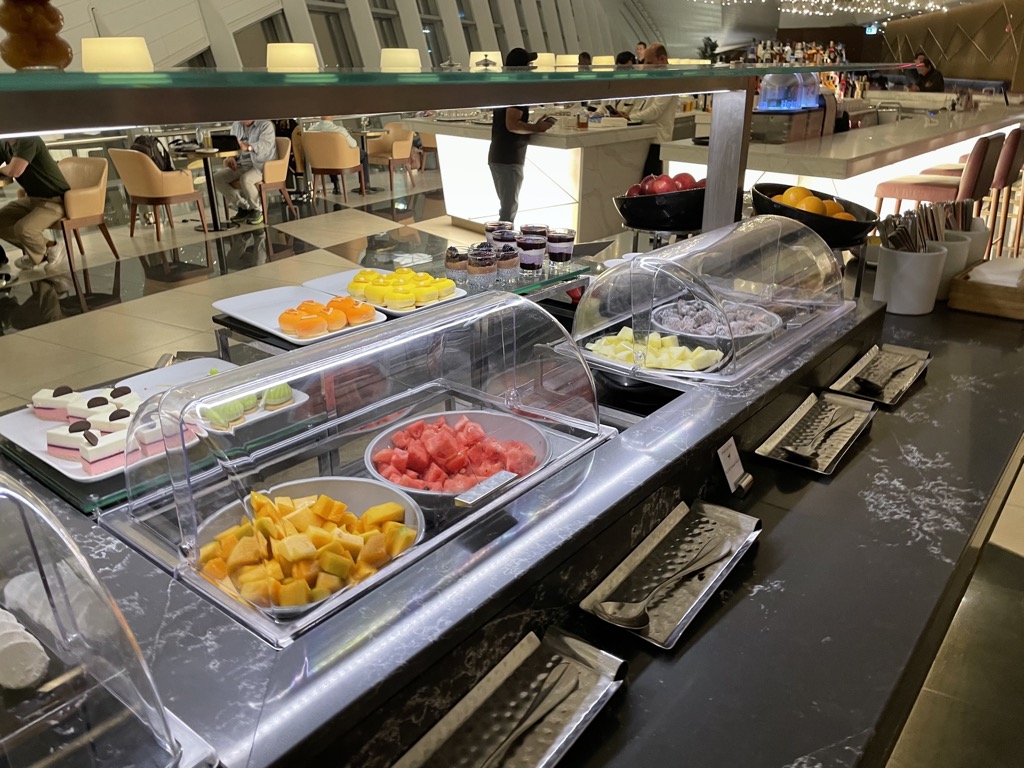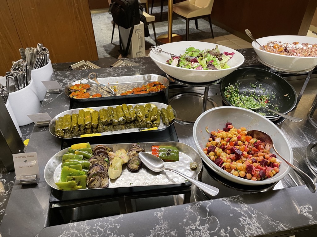 An gleich drei Buffet Inseln bietet hier Etihad Airways mehrere kalte und warme Speisen aus verschiedenen Regionen an. Für eine Business Class Lounge fand ich das Angebot auch sehr ansprechend und vor allem umfangreich, wobei man sich natürlich etwas wie ein kleines Menü mit frischen Gerichten durchaus wünschen könnte. Darauf verzichtet man aber in der Business Lounge komplett und solch ein Fine Dining Konzept ist auch bei Etihad Airways, zumindest in der Lounge in Abu Dhabi der First Class vorenthalten.