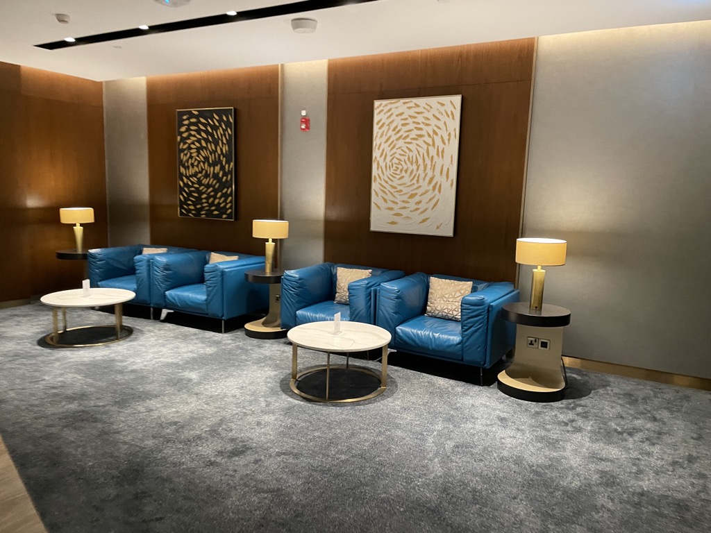 Dort angekommen habe ich mich mit der Lounge ein wenig vertraut gemacht und sie erinnerte mich im Aufbau durchaus etwas an die Emirates Lounge in Dubai, da sie sich entlang der Fensterfront sehr weit über das Terminal erstreckt. Hier findet man auch eine Reihe von verschiedenen Sitzgelegenheiten, sowie Spezialbereiche.