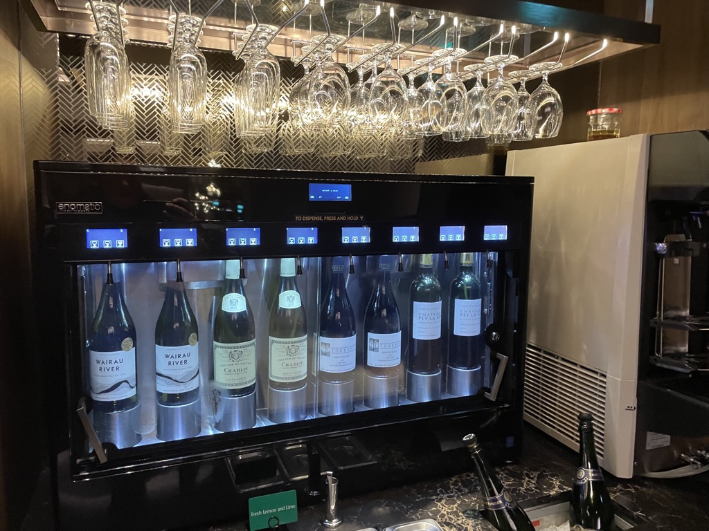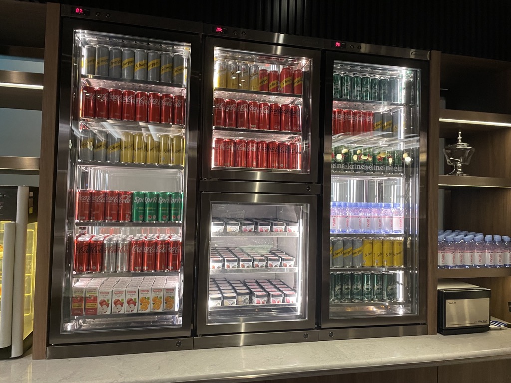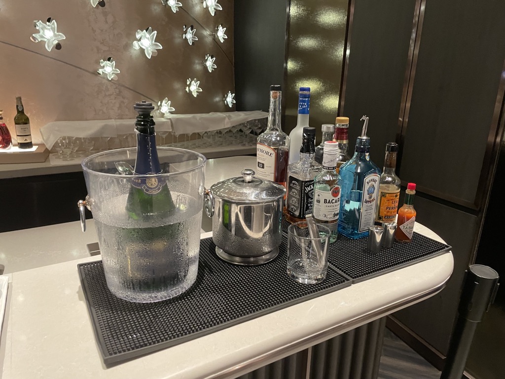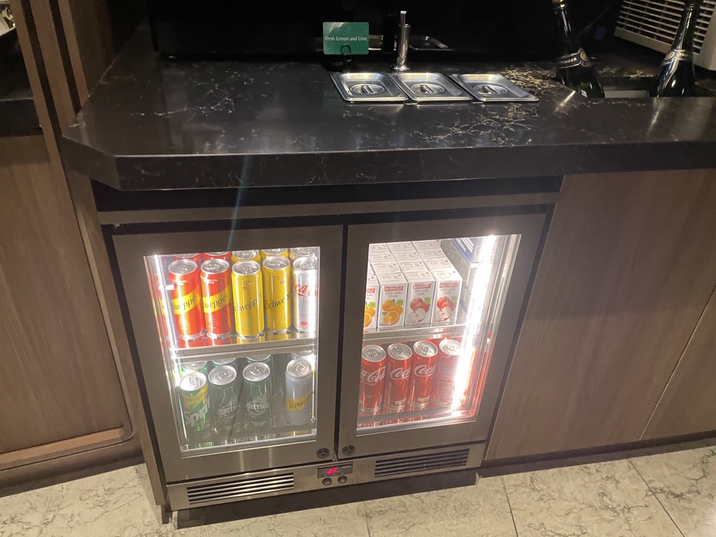 Getränke kann man an einer ganzen Reihe von Stationen entweder selbst aus Kühlschränken nehmen oder an der bedienten Bar ausschenken lassen. Auch hier ist die Auswahl hochwertig und kann sich sehen lasse.