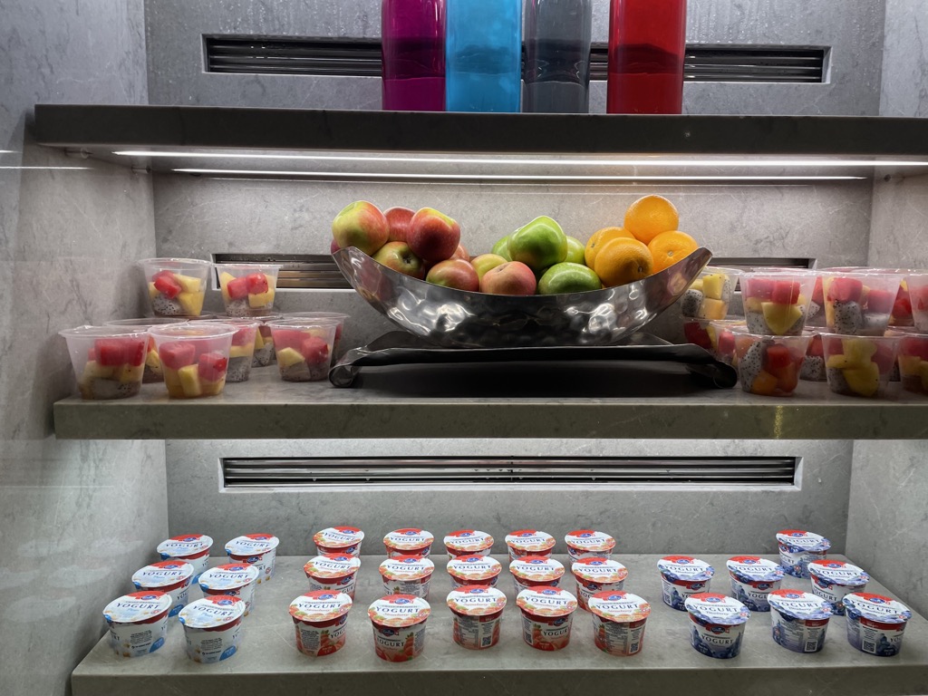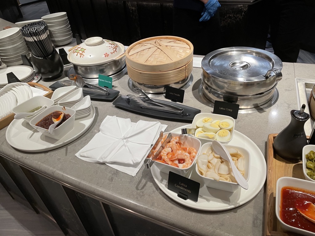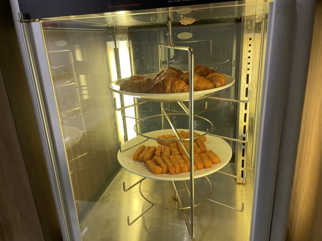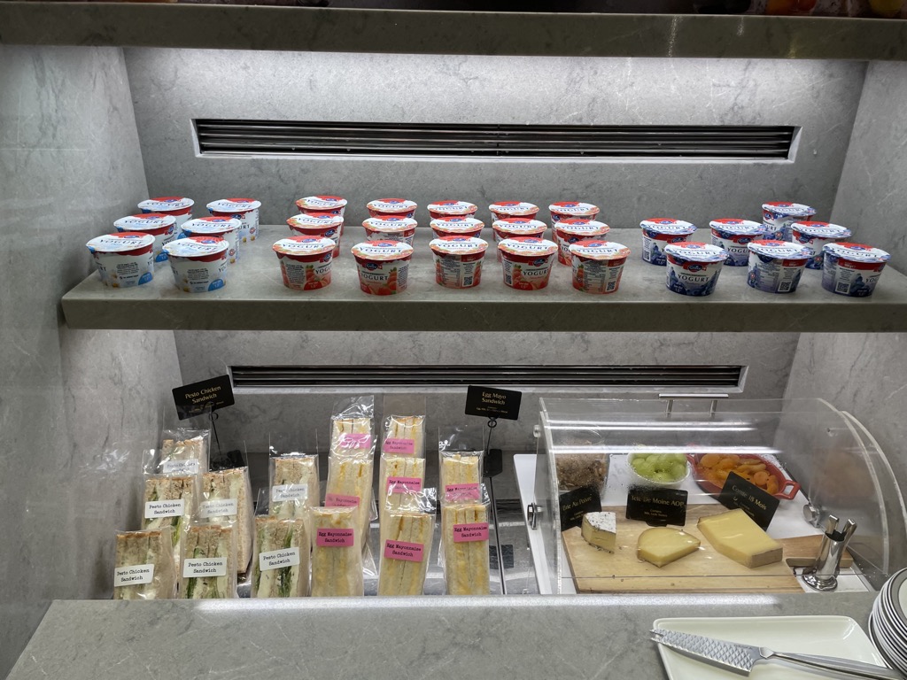 Wie oben schon kurz angesprochen, hat die Singapore Airlines First Class Lounge ein Buffet, an dem man sich selbst aus warmen und kalten Speisen bedienen kann. Hierbei ist die Auswahl durchaus sehr groß und gut. Ich habe die Lounge wie schon geschrieben am Morgen besucht und entsprechend war auch das Angebot.