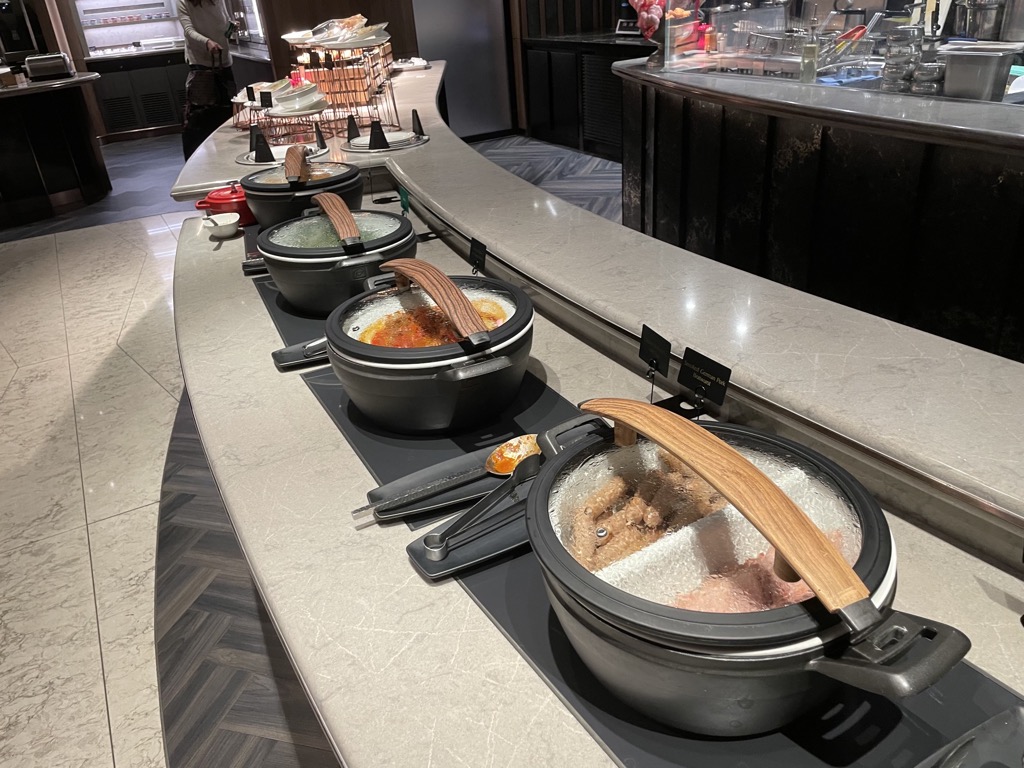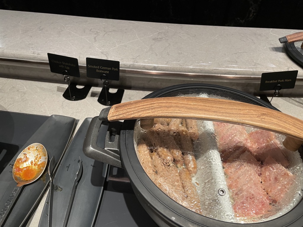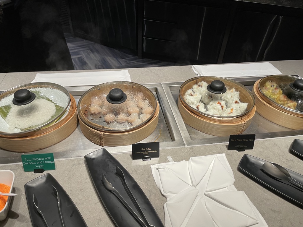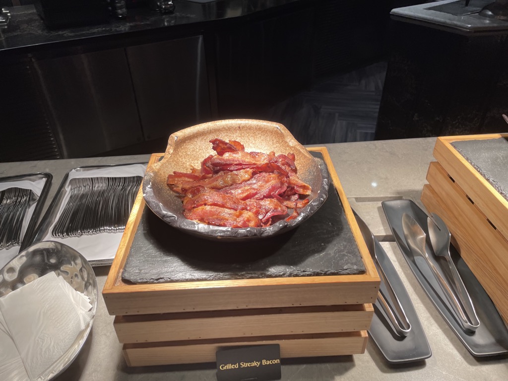 Wie oben schon kurz angesprochen, hat die Singapore Airlines First Class Lounge ein Buffet, an dem man sich selbst aus warmen und kalten Speisen bedienen kann. Hierbei ist die Auswahl durchaus sehr groß und gut. Ich habe die Lounge wie schon geschrieben am Morgen besucht und entsprechend war auch das Angebot.