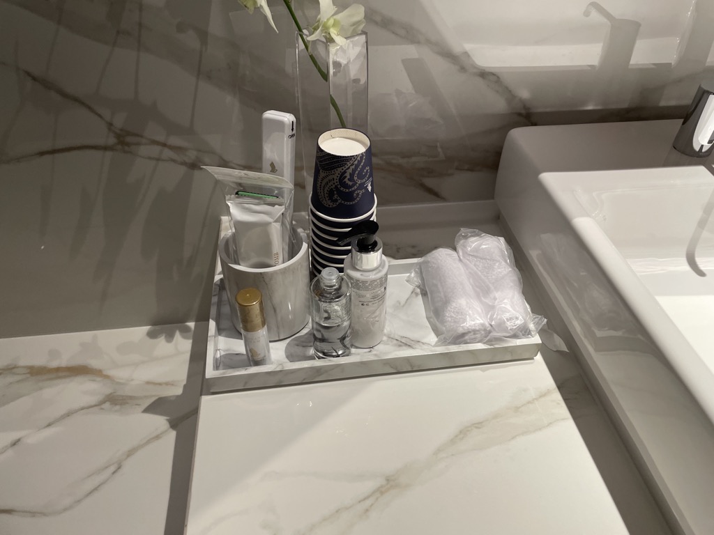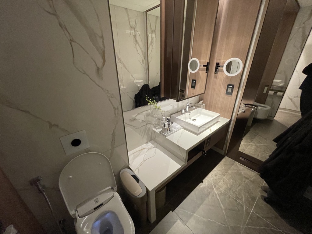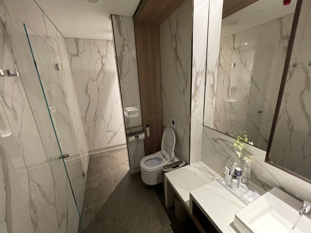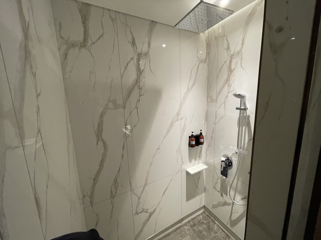 Die Singapore Airlines First Class Lounge hat natürlich auch eigene Toiletten und Duschen. Diese sind auch neu und schön gestaltet, auch wenn sie in meinen Augen etwas größer hätten sein dürfen. Für eine erfrischende Dusche am Morgen waren sie aber genau richtig.