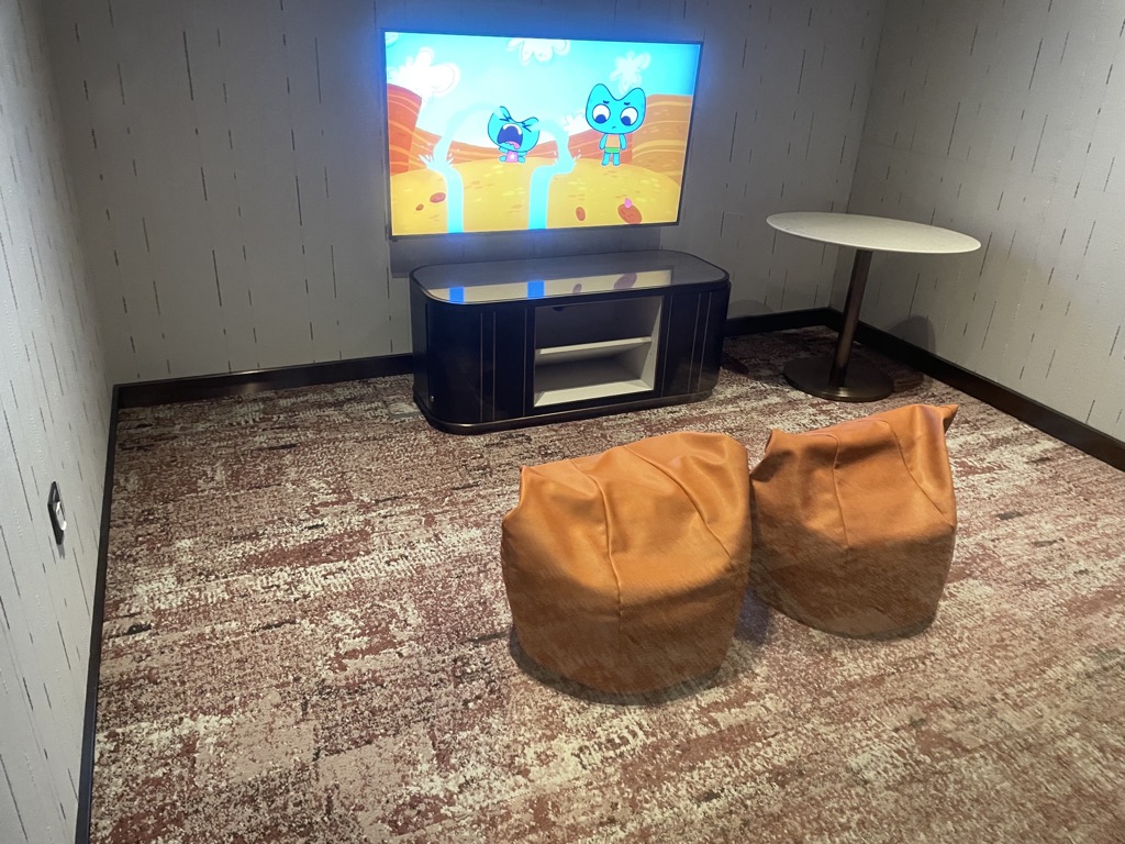 Etwas worauf ich erst achte, seit wir selbst Kinder haben, aber was auch in den besten Lounges gerne einmal unter den Tisch fällt, ist das Angebot für die jungen Gäste. Die Singapore Airlines First Class Lounge hat hier einen eigenen Play Room für Kinder, den ich zwar nicht als Kinderparadies bezeichnen würde, aber man findet hier immerhin einen Rückzugsort, der von den anderen Passagieren abschirmt, sodass beide Gruppen hier etwas von haben.