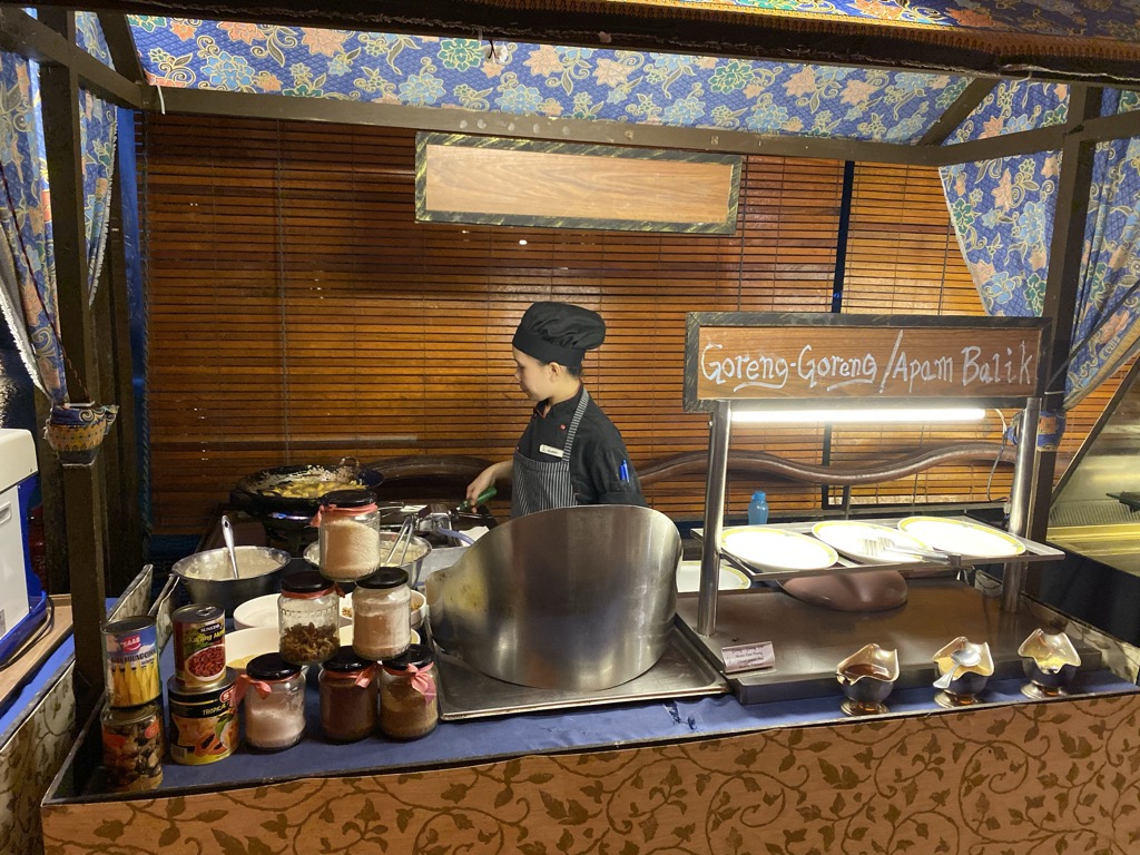 Das Penyu ist ein Buffetrestaurant, in welchem zu jeder Mahlzeit Essen angeboten wird. Neben Vorspeisen in Form von Salaten gibt es einige warme (vor allem asiatische) Hauptspeisen und verschiedene Desserts. Das Personal ist sehr fleißig und räumt benutztes Geschirr zügig ab.