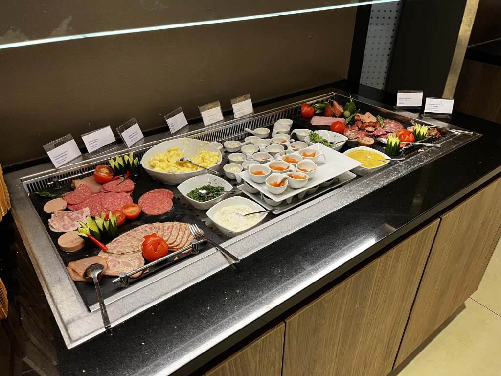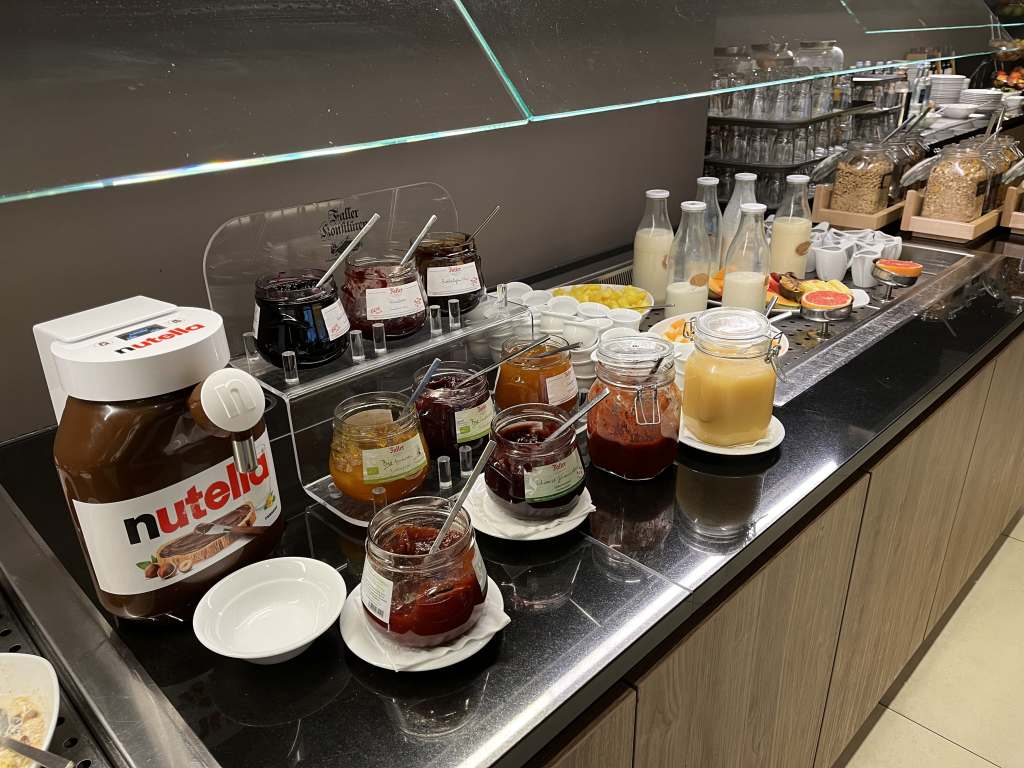 Aber auch die Auswahl am Büffet konnte punkten. Da gab es natürlich Wurst- und Käse-Aufschnitt. Wobei die Auswahl an Käse-Sorten beeindruckt hat und ich den Lachs nur schwer stehen lassen konnte. Ergänzend dazu konnte ich mir auch mit zahlreichen Marmeladen-Sorten oder Nutella Brot und Brötchen belegen.