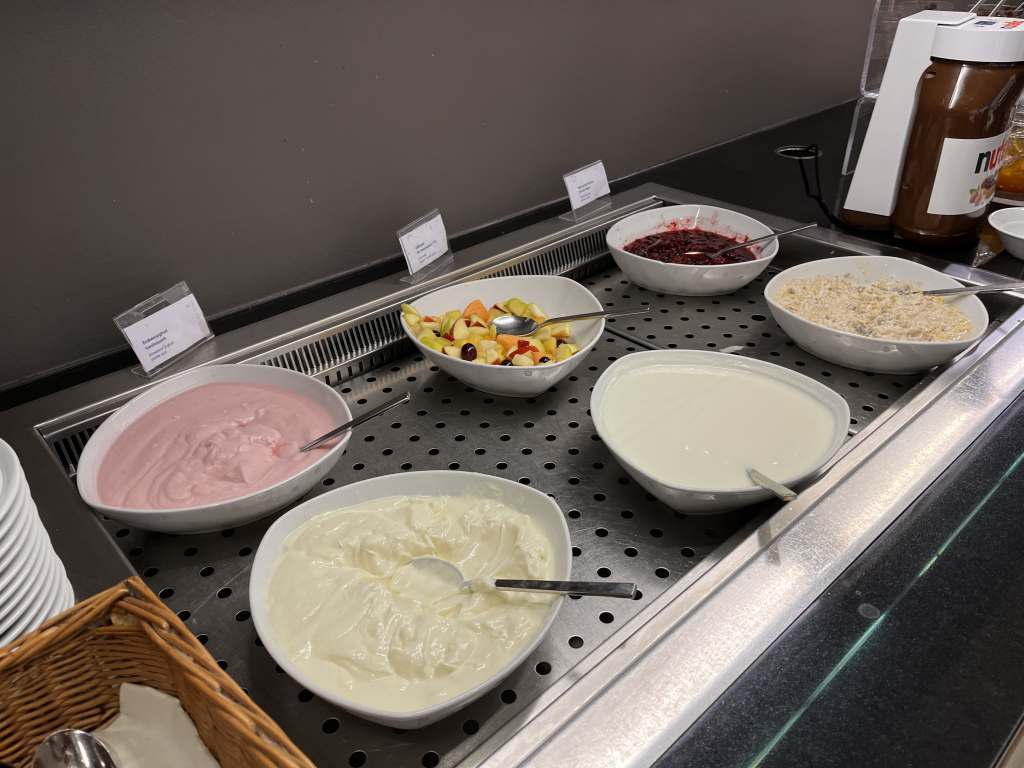 Aber auch die Auswahl am Büffet konnte punkten. Da gab es natürlich Wurst- und Käse-Aufschnitt. Wobei die Auswahl an Käse-Sorten beeindruckt hat und ich den Lachs nur schwer stehen lassen konnte. Ergänzend dazu konnte ich mir auch mit zahlreichen Marmeladen-Sorten oder Nutella Brot und Brötchen belegen.