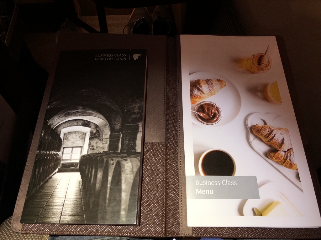 Es war schon nach 2 Uhr nachts, viele Passagiere machten sich bettfertig. Die Flugbegleiter fragten noch schnell die Essenswünsche ab, die entsprechenden Menükarten wurden in einem Lederbuch ausgeteilt. Auch Pyjama und das Amenity Kit wurden persönlich überreicht.