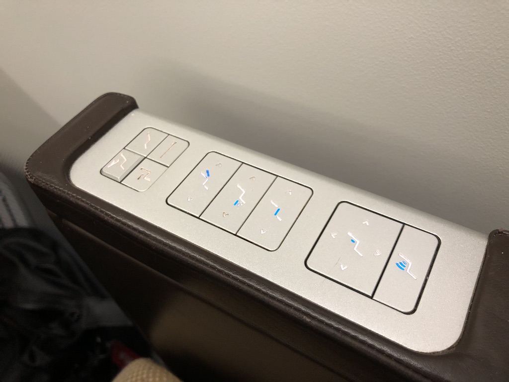 Am Sitz gibt es Steckdose, USB Anschlüsse und reichlich Stauraum, die Kopfhörer lagen in einem Etui bereit.
