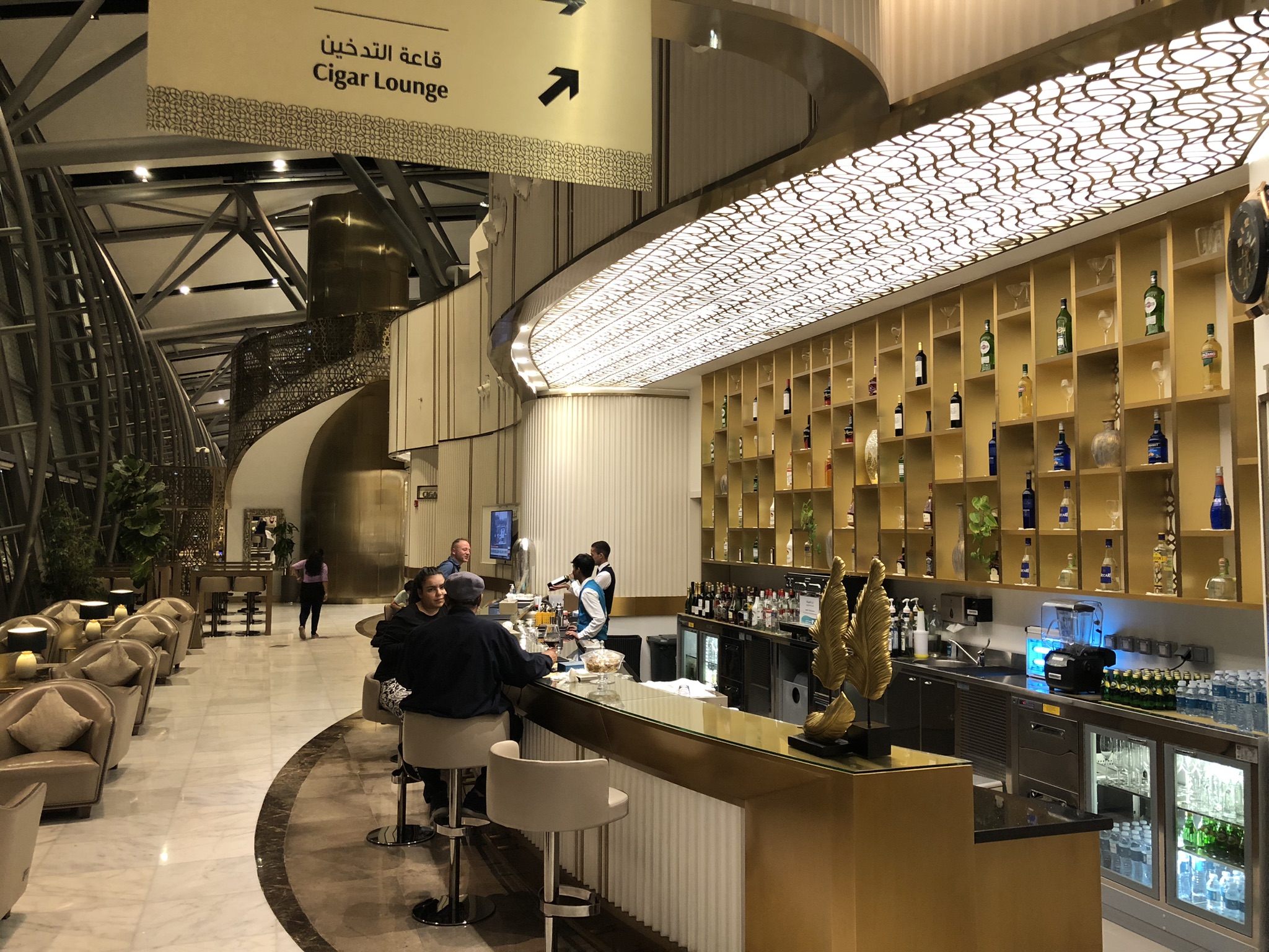 Man muss das goldene Design schon mögen, diesem Glanz kann man sich in keinem Winkel der Lounge entziehen. Muster und Farben passen allerdings auch sehr gut zur Airline und der Region.