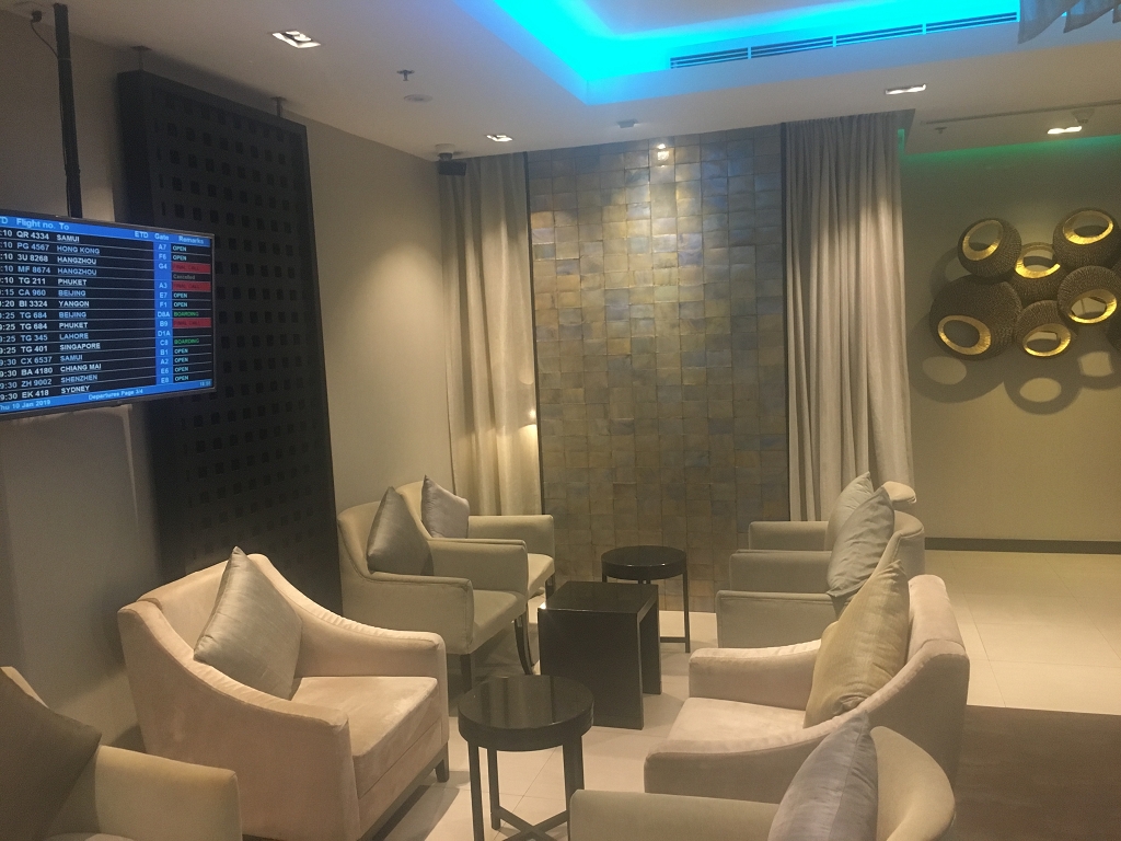 Mir hat die Lounge gut gefallen. Ihre Lage in der Nähe zum Abfluggate war ebenfalls sehr praktisch. Die Einlasskontrolle ist sehr strikt, aber das Zeitlimit für Priority Pass Inhaber wird angeblich nicht überprüft. Mein kleines Highlight waren die kleinen Flaschen Perrier Sprudelwasser, die alle mit thailändischen Zollmarken beklebt waren. Die scheinen ein echtes Luxusgut zu sein.