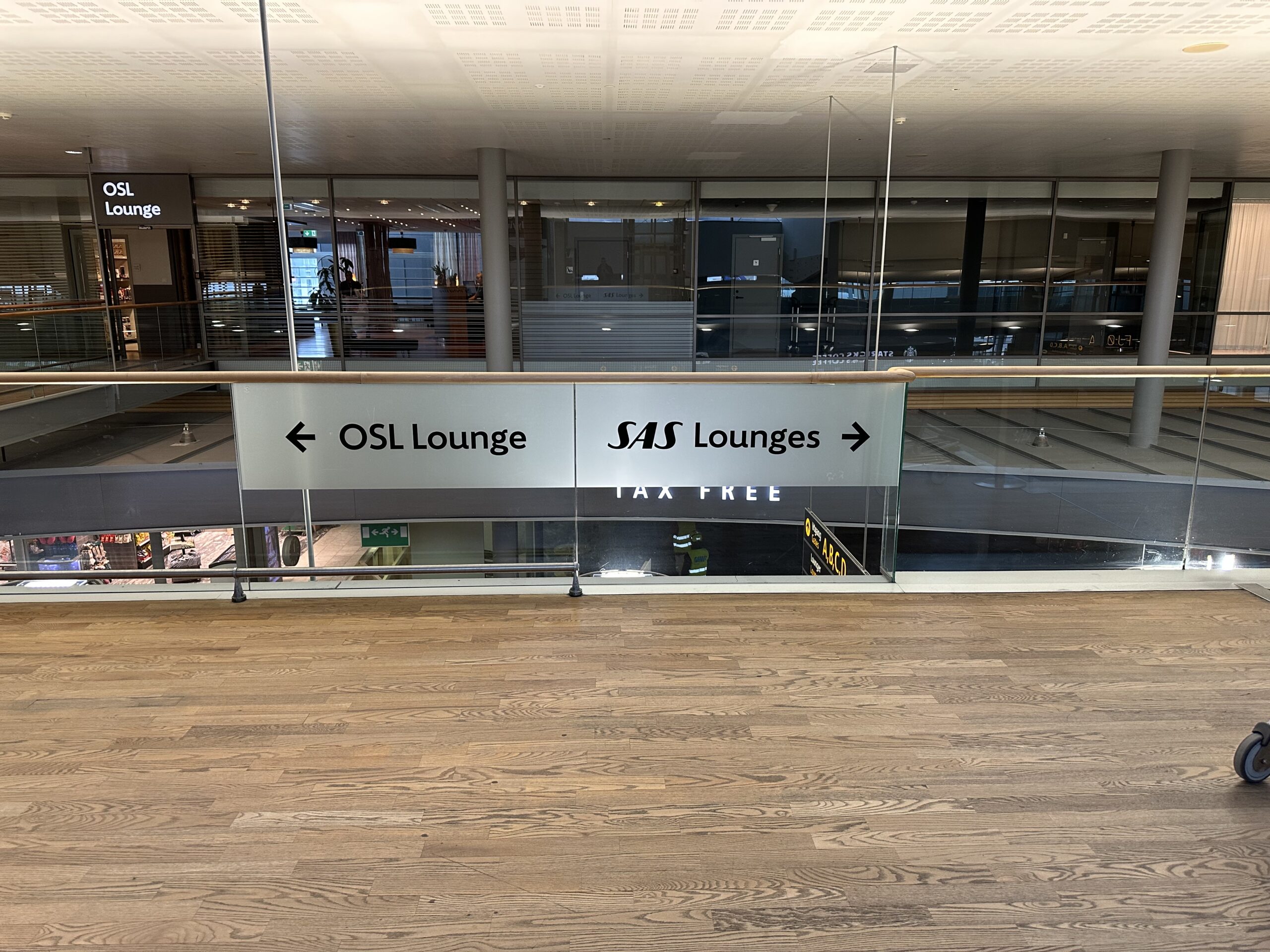 Alle nicht mit SAS verpartnerten Airlines schicken die Premium-Kunden in die OSL Lounge, dort dürfen Passagiere der SkyTeam und oneworld Gesellschaften und Partner wie Emirates rein. Neben der Liste mit allen Airlines, Klassen und Statusstufen steht noch ein Schild mit einigen Kreditkarten- unter anderem ist dort auch eine American Express abgebildet.