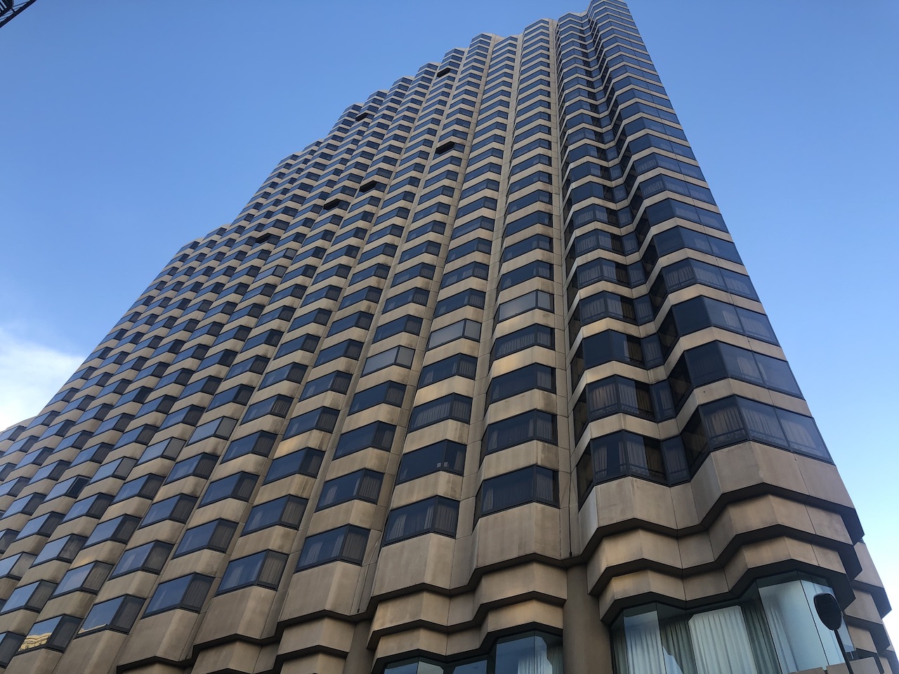 Das Parc 55 gibt es schon viele Jahre, irgendwann wurde das Haus von Wyndham übernommen und wechselte dann später ins Portfolio von Hilton. Von Außen hat sich das Hotel über die Jahre nicht verändert, auch der Name blieb immer gleich.