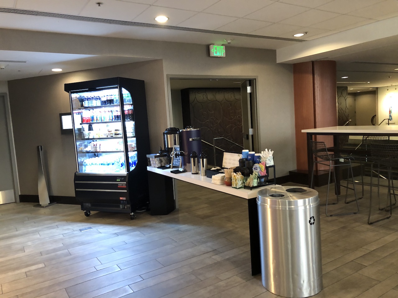 Neben der Lobby befindet sich das Restaurant „Cable 55“, dort können Statuskunden das Guthaben zum Frühstück, Lunch oder Dinner einlösen. Morgens steht ein Buffet bereit, dieses liegt preislich bei 39$ pro Person.