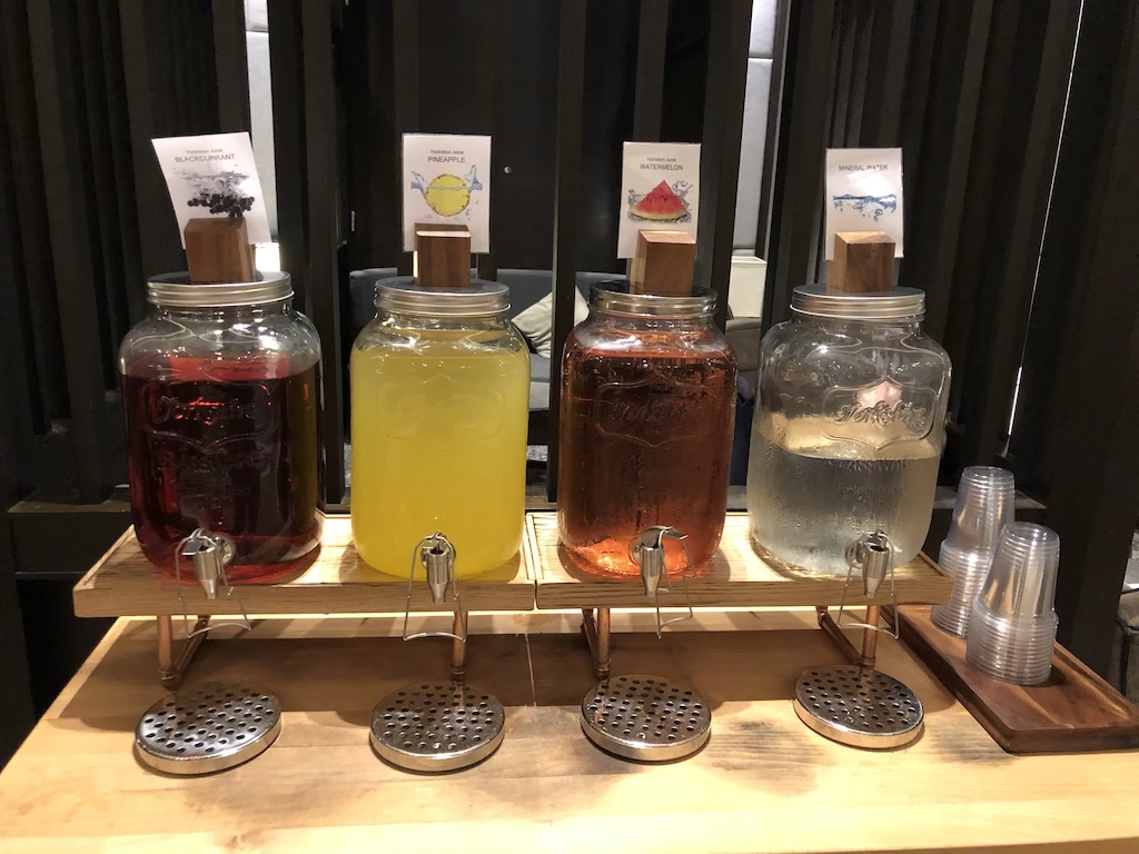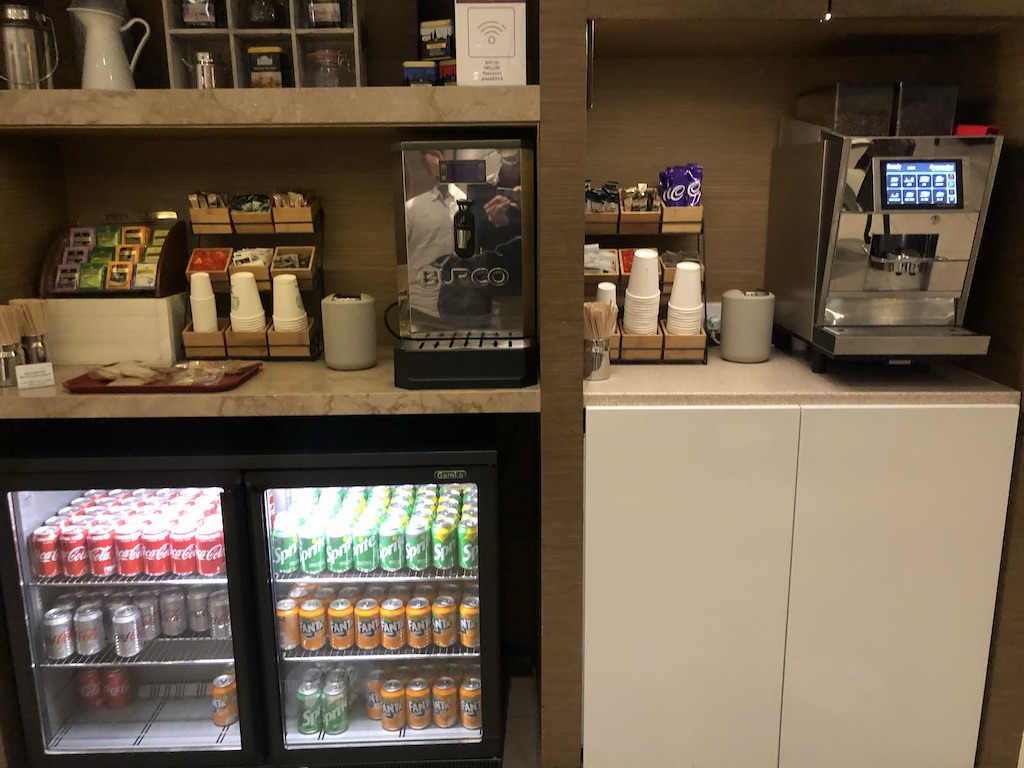 An Heißgetränken und Softdrinks kann man sich in der Plaza Premium Lounge selbst bedienen, es gab darüberhinaus eine Station für Wasser mit und ohne Geschmack.