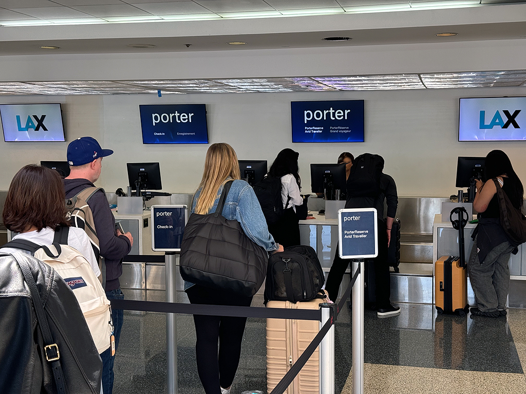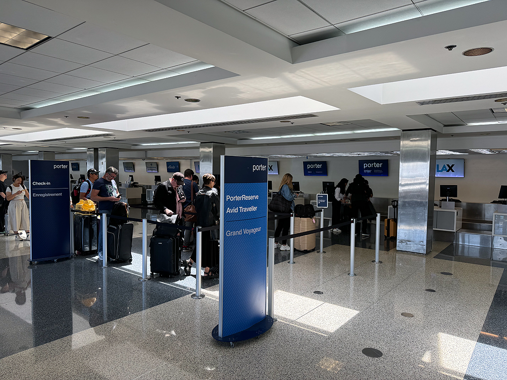 Also begab ich mich am Flughafen LAX auf die Suche nach dem Porter Check-In Schalter in Terminal 6. Da Porter nur einen Flug am Tag von LA anbietet, ist der Auftritt am Flughafen entsprechend klein.