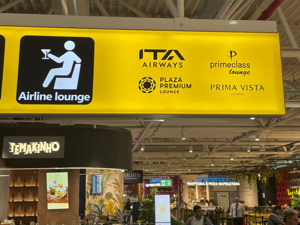 Wenn Ihr nicht zuvor an den Aufgängen zu den Lounges vorbeigegangen seid. werdet Ihr zunächst die Prima Vista oderITA Airways Hangar Lounge finden. Dahinter liegt die Plaza Premium Lounge und zu guter Letzt die Primeclass Lounge.