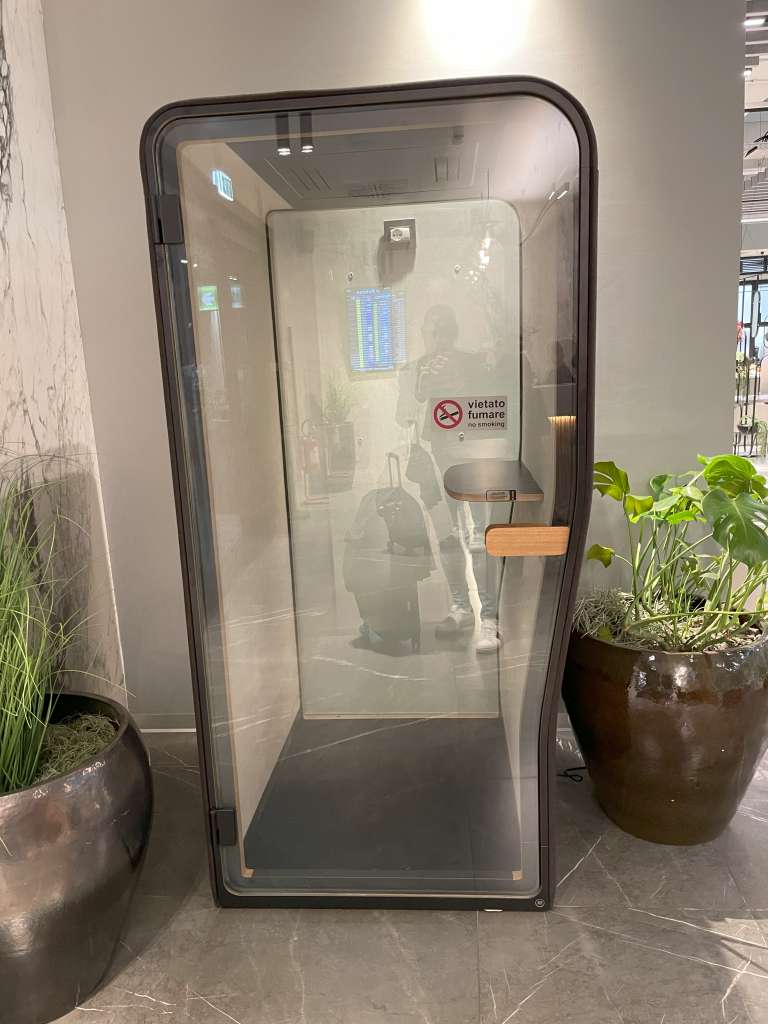 Die Ruheräume bieten Entspannungsmöglichkeiten, und die modernen schwarzen Tische mit Metallstühlen schaffen eine funktionale, aber stilvolle Atmosphäre. Leider konnte ich die Ruheräume während meines Aufenthalts nicht nutzen, da sie voll besetzt waren. Unabhängig davon war es in der Primeclass Lounge jedoch deutlich weniger unruhig als in den beiden anderen unabhängigen Lounges. Vielleicht bieten hier die Lage oder die Zugangsregeln hier einen Vorteil für Gäste mit Priority Pass.