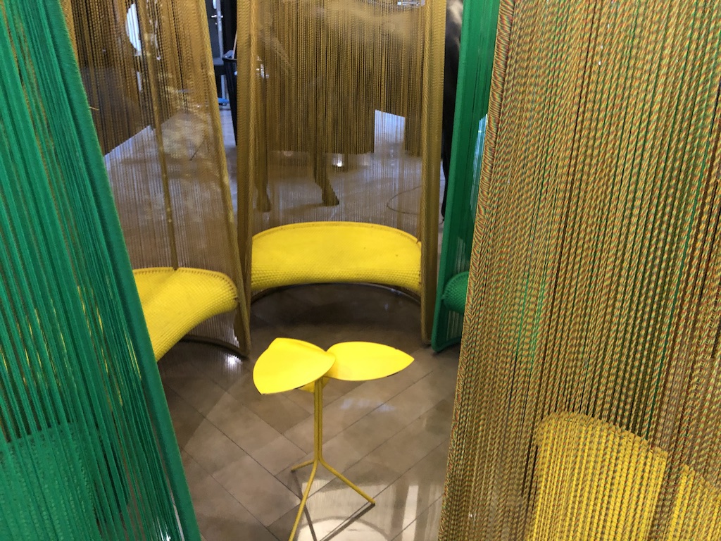 Im Lobbybereich gibt es neben der Rezeption viele Sitzmöglichkeiten, eine Bar, Waschräume und dem Zugang zum Restaurant und den Tagungsräumen.