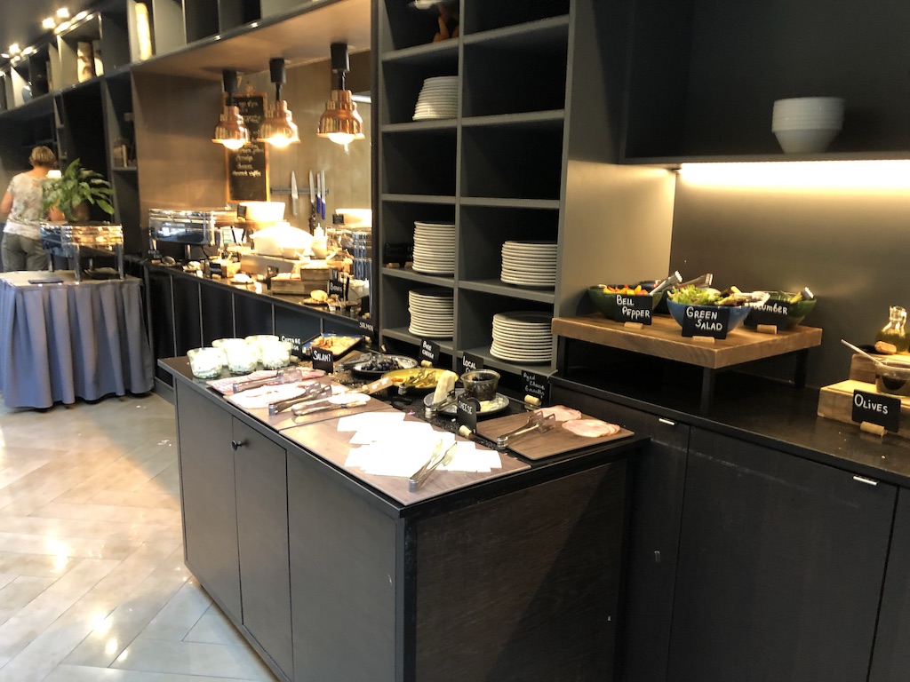Generell war Selbstbedienung am Buffet angesagt. Neben kalten Speisen, Brot, Obst, Joghurt und Aufschnitt war auch viel Fisch erhältlich. Einige warme Speisen wie Pfannkuchen und Rührei komplettierten das Sortiment, Eierspeisen wie Omelette konnten nach eigenem Geschmack bestellt werden.