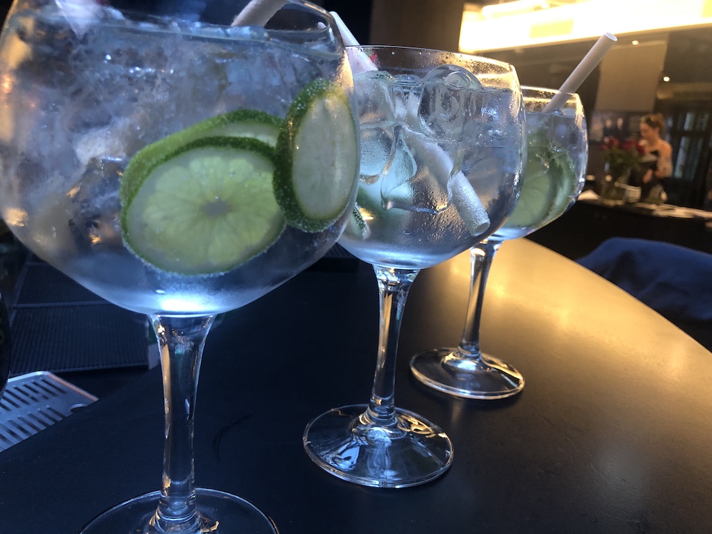 Auf den Zimmern standen Wasserflaschen bereit, zusätzlich dazu war je ein Obstteller angerichtet. Die Getränkevoucher konnten wir wahlweise für Softdrinks, Heißgetränke, Cocktails und verschiedene Weine einlösen. Wir entschieden uns für Gin Tonics als Aperitif vor dem Abendessen.