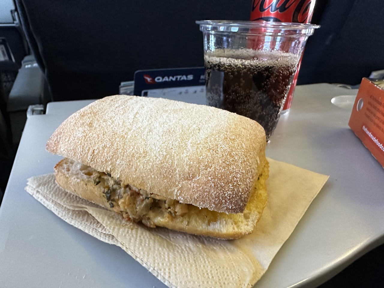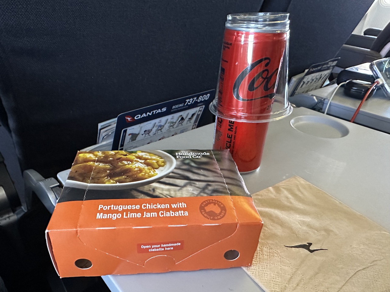 Unser kürzester Flug führte von Hobart nach Melbourne – während den 70 Minuten gab es ein warmes Sandwich plus Getränke.