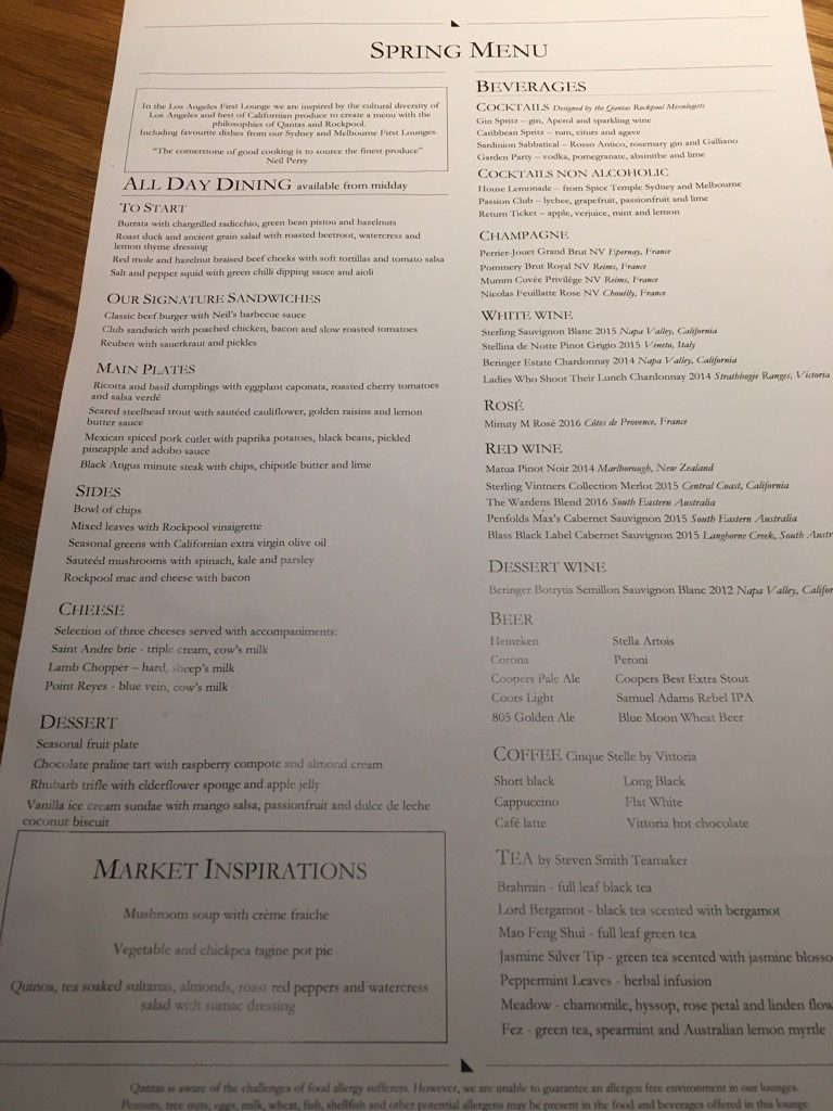 Qantas First Class Lounge Los Angels | Essen & Getränke
