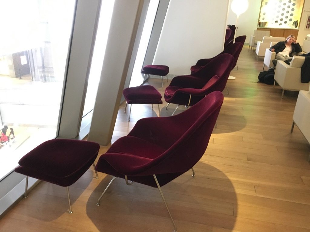 Besonders die Sessel mit Ottomanen am Fenster haben es mir angetan und hier verbirgnge ich meistens meine Zeit. Sie erinnern mich sehr stark an die Sessel am Fenster im Lufthansa First Class Terminal in Frankfurt, der Lufthansa First Class Lounge in München oder der Austrian HON Circle Lounge in Wien.