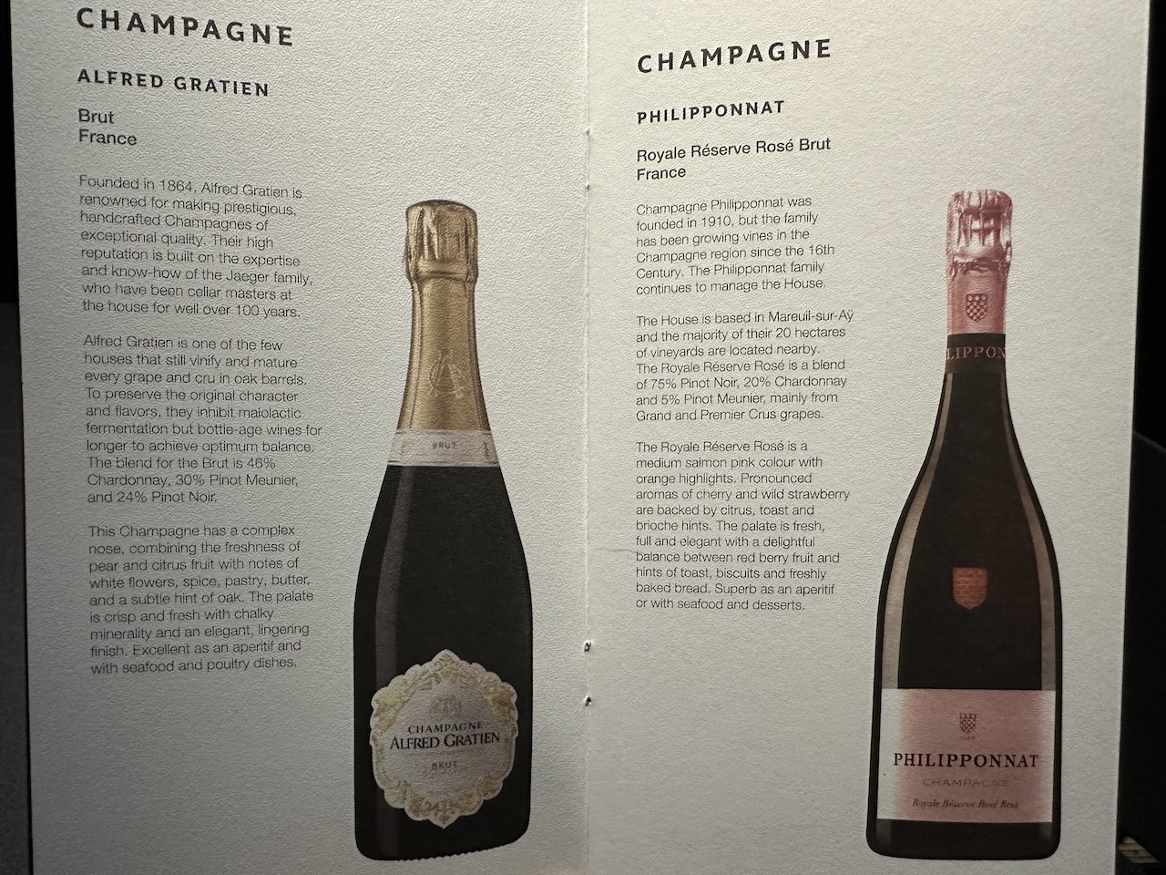 Der Flug war eher kurz, die Speise- und Getränkekarte trotzdem üppig: