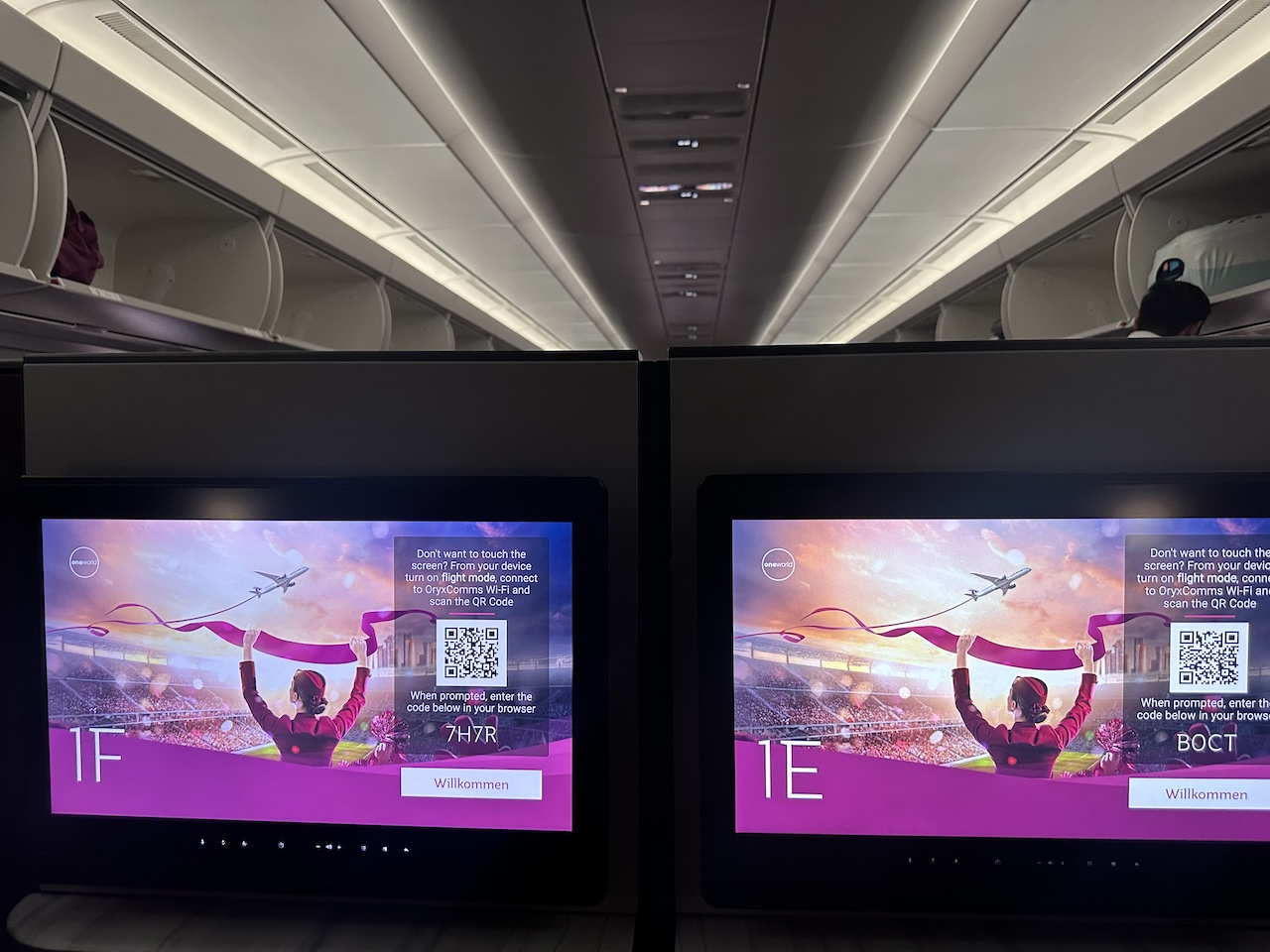 Ob Kurz- oder Langstrecke- das prall gefüllte Entertainment Programm konnte uneingeschränkt genutzt werden. Das Flugzeug war bereits mit Starlink ausgerüstet, man kann schon am Boden oder im Sinkflug schnell und kostenlos surfen, eine umständliche Anmeldung ist nicht notwendig.