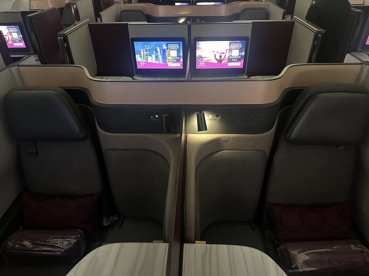 Die Q-Suites kennen viele von Euch, nicht alle sind Fans dieser markant angeordneten Sitze. Für einen etwa 3-stündigen Mittelstreckenflug ist das Produkt aber auf jeden Fall purer Luxus.