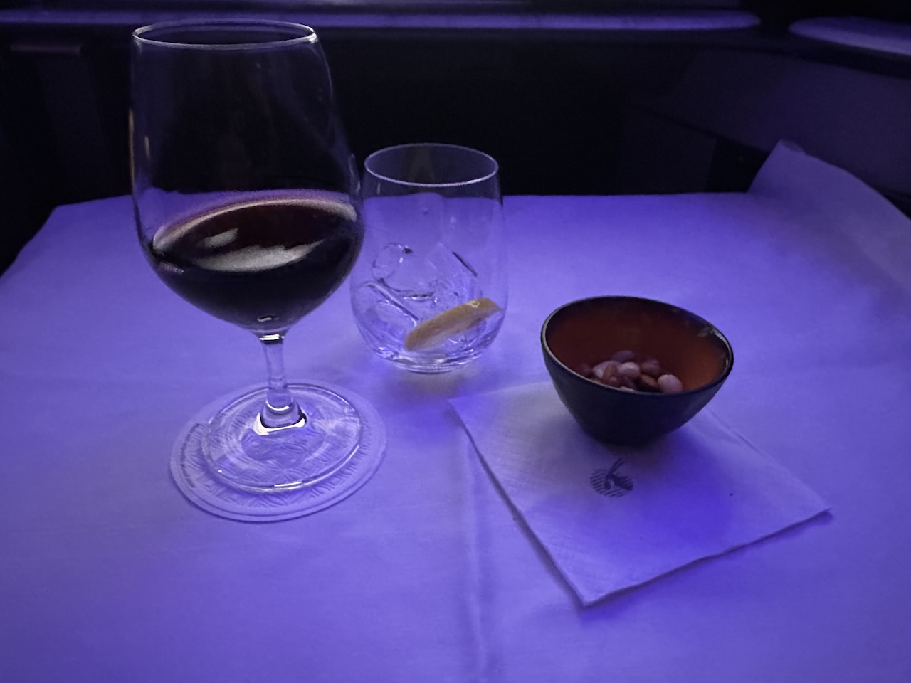 Die Gläser wurden bei allen Passagieren mehrfach aufgefüllt, wer nichts gegessen hat oder schon fertig war, hat Nüsse zum Getränk erhalten.