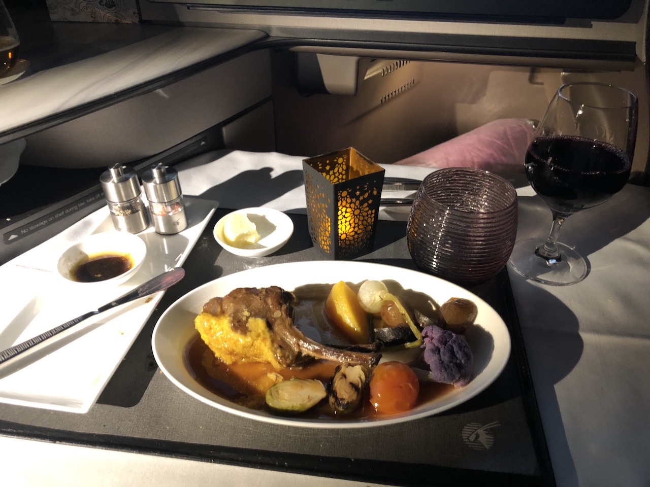 „Qatar bietet einen exzellenten Service in der Business Class, Gäste können aus einer umfangreichen Karte wählen und den Zeitpunkt der Mahlzeiten selbst festlegen. Bei solch langen Strecken hatten wir die Möglichkeit zwei volle Servicegänge zu ordern und zusätzlich teilweise warme Snacks zu bekommen.“