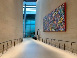 In den Gängen der Lounge finden sich immer wieder Sitzgelegenheiten zum Verweilen oder aber Arbeitsplätze. Außerdem sind diverse Bereiche mit regionalen Kunstschätzen dekoriert.