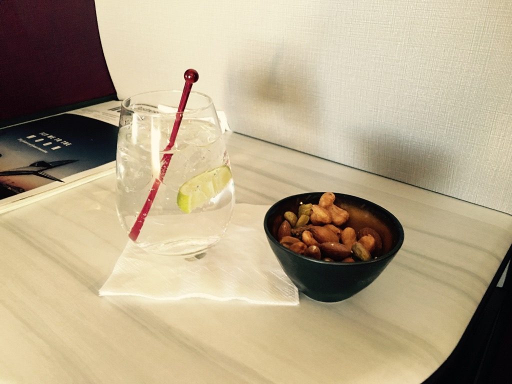 Nachdem weniger als 10 Minuten nach dem Start die Anschnallzeichen ausgegangen sind, hat man auch direkt mit der Vorbereitung für den Service begonnen. So hatte ich wenige Minuten später einen Drink und warme Nüsse neben mir stehen.