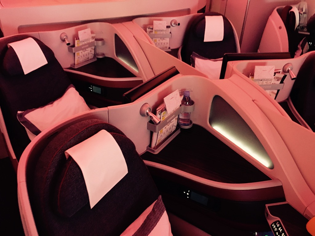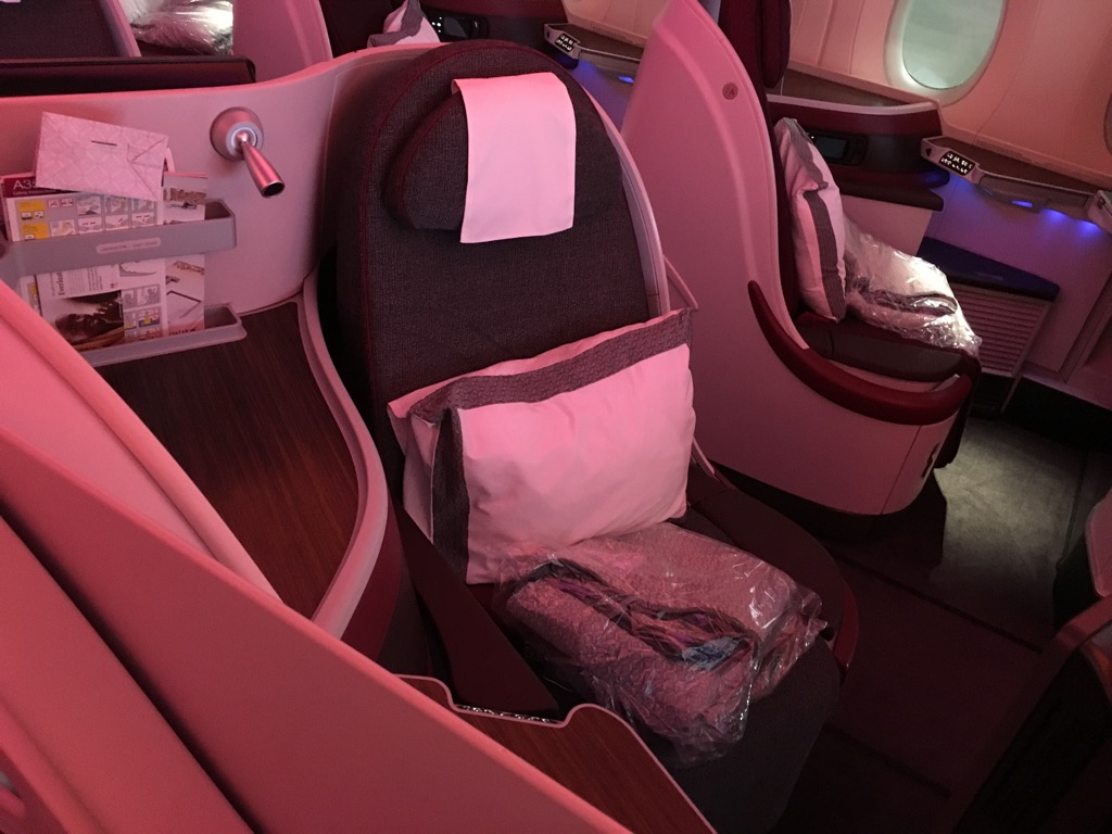 Qatar Airways Business Class Airbus A350-900 „Red Eye“ | Kabine und Sitz