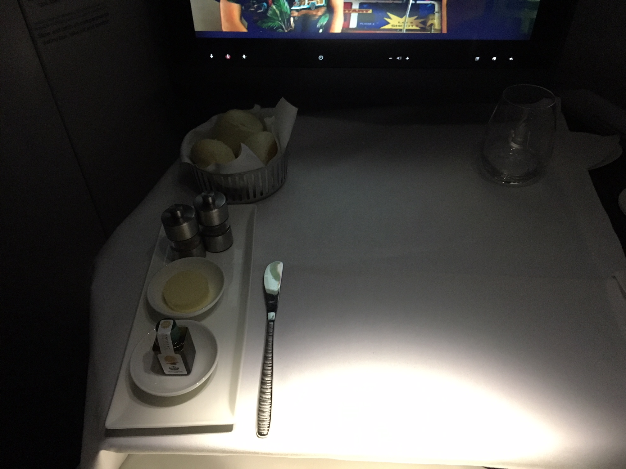 Auf diesem kurzen Nachtflug gab es ein volles Abendessen und ein volles Frühstück. Schon vor dem Flug habe ich mit Bi Bi abgeklärt, dass ich gerne einen kleinen Snack nach dem Start essen würde und dann so lange es geht schlafen will.