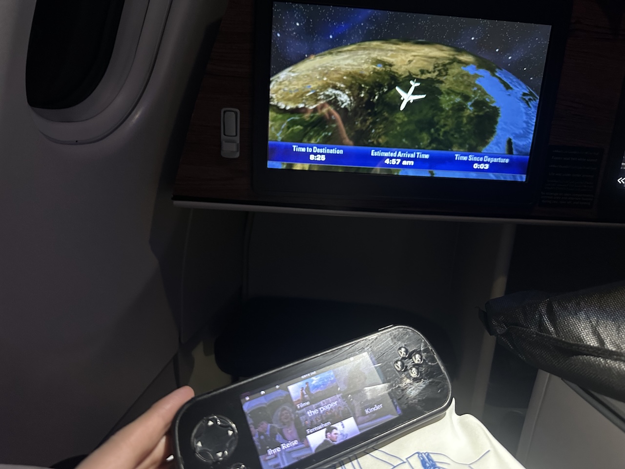 Internet gab es nicht, zumindest funktionierte es auf dieser Maschine nicht. Im Entertainment Programm waren ein paar Klassiker und einige neue Filme, wobei ich mich hier nicht näher beschäftigt habe.