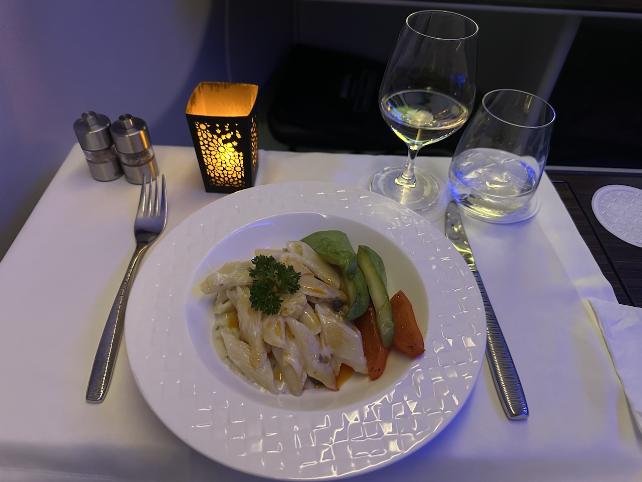 Wir haben unsere Mahlzeiten schon vor dem Flug ausgewählt und diese dann so serviert bekommen.