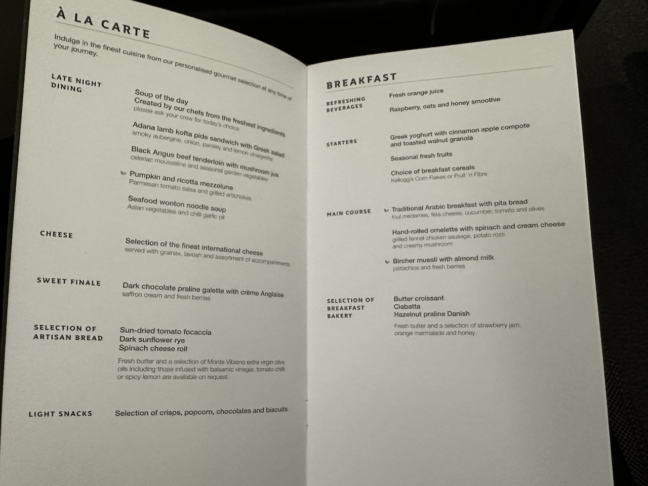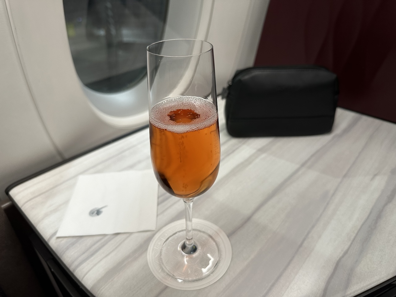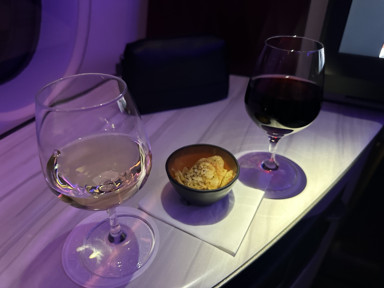 Ich esse bei solchen kürzeren Nachtflügen lieber vorher in der Lounge, an Bord gibts dann nur noch ein Getränk.