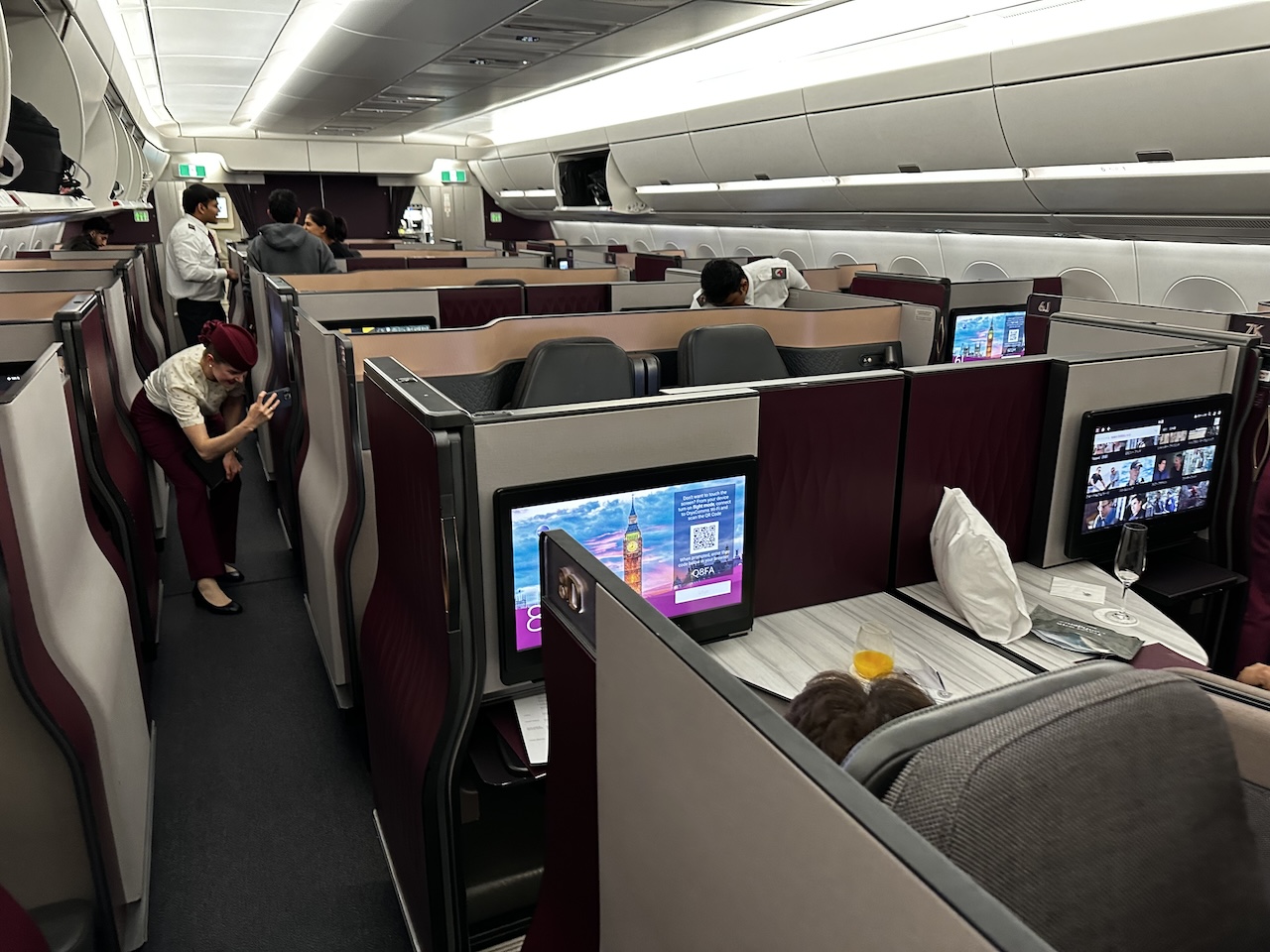 Ich persönlich empfinde die Q-Suite nicht als etwas wirklich Besonderes und ziehe den Sitz, den QR in der 787 und teilweise auch im 350 verbaut hat, deutlich besser. Der Sitz, den ich meine, ist, glaube ich, von Collins Aerospace.
