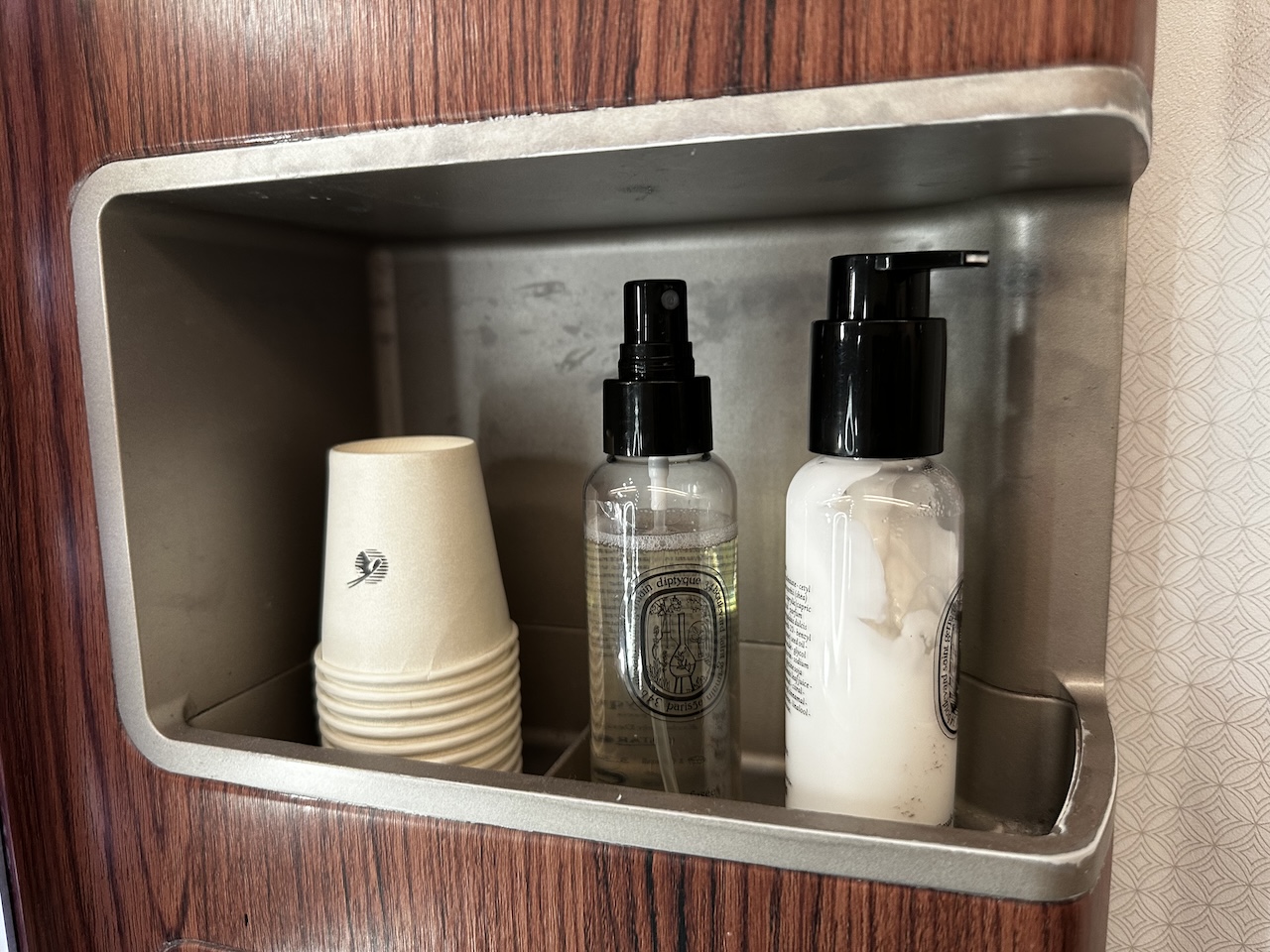 2. Auf längeren Flügen ziehe ich fast immer die Schuhe aus und die Socken an. Die Collins Sitze haben unten eine kleine Schublade für die Schuhe. Die Q-Suite hat dafür – gar nichts.