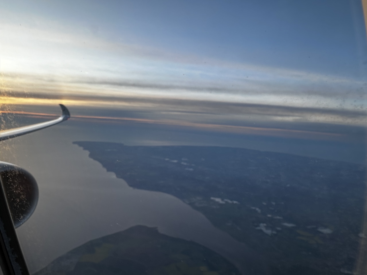 Auf das Frühstück habe ich verzichtet, wobei es für diesen kurzen Flug viele Optionen gab. Dies wurde respektiert, meine Tür blieb bis zum Verlassen der Reiseflughöhe geschlossen. Ich war mit einem Glas Wasser zufrieden, aus dem Cockpit gab es noch ein paar Infos und das Wetter, die Kabinenchefin verabschiedete sich bei jedem Gast.