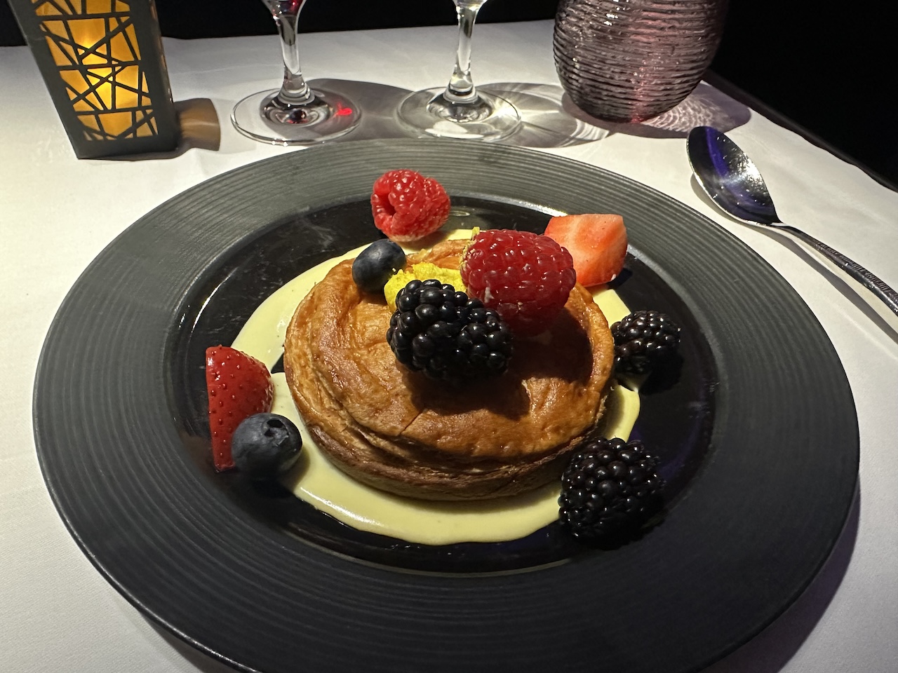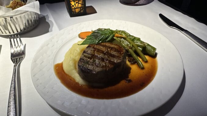 Suppe und Hauptgang haben sehr gut geschmeckt, das Fleisch war relativ zart und saftig. Beim Dessert musste ich schon etwas kämpfen. Die Auswahl und die Präsentation der Speisen war hervorragend.